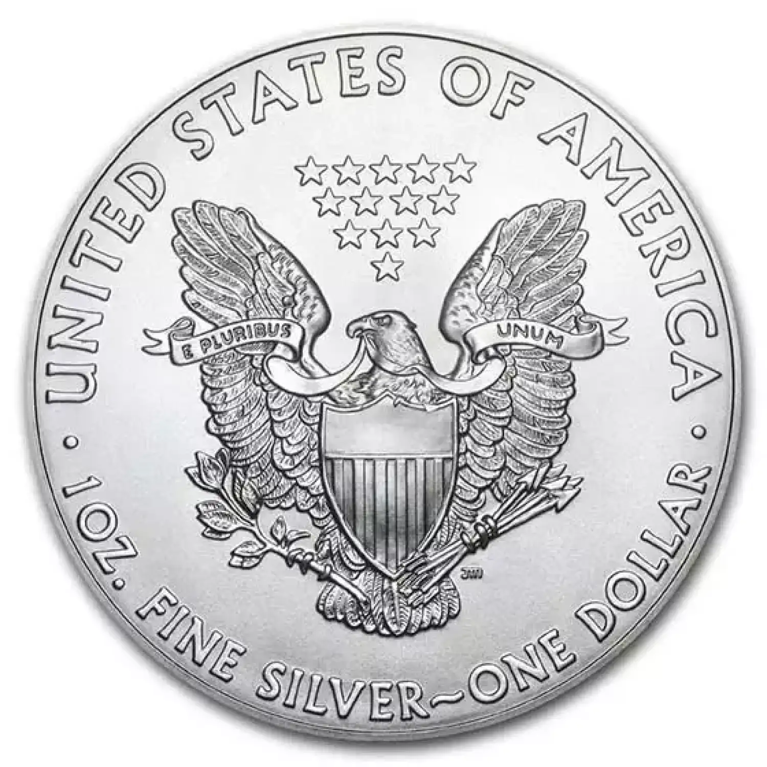 The Silver American Eagle is the official silver bullion coin of the United States. It was first released by the United States Mint in 1986. Its content, weight, and purity are certified by the US Mint. This beautifully designed 1 oz silver American Eagle coin has a silver content of 1 troy ounce and is guaranteed to be .999 fine.
