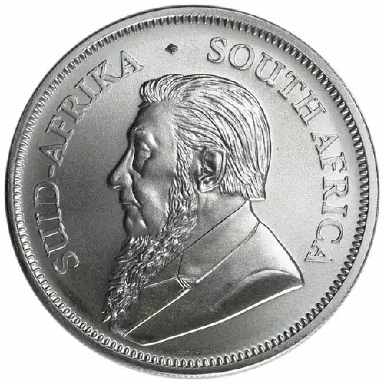 The reverse of this silver coin is the springbok, South Africa’s national animal. The Springbok or Antidorcas marsupialis is characteristic for its jumping ability. Modeled by the renowned South African sculptor, Coert Steynberg. On the obverse of the coin is Paul Kruger, South Africa's famous leader. The word "Krugerrand" is derived from Paul Kruger and the rand, the monetary unit of South Africa, which is associated with the Witwatersrand ‚the ridge of white water‘ – the gold producing area discovered in 1886 in South Africa.