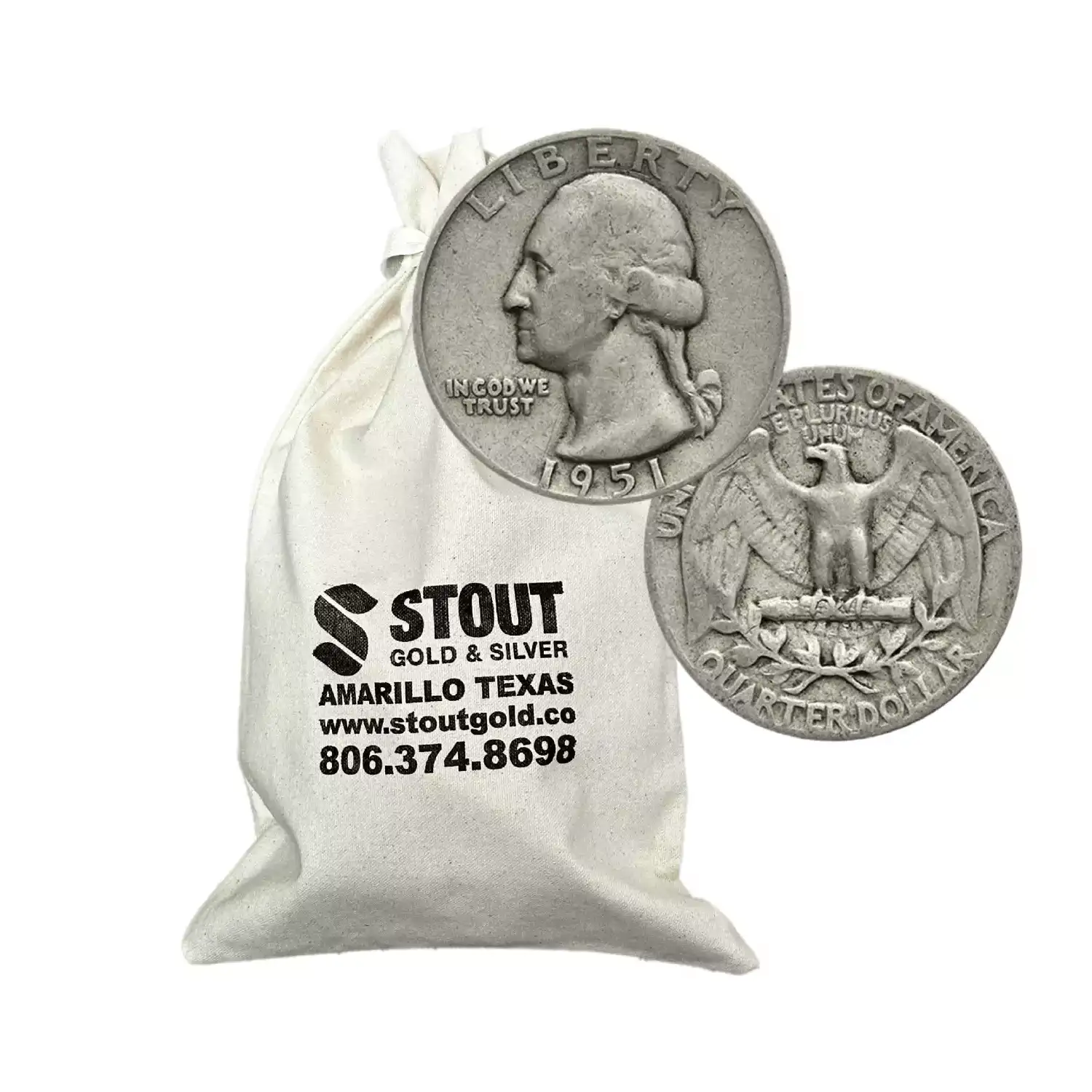 A minimum of $100 Face Value, and a max of $500 Face Value comes in a Stout Gold and Silver Cloth Bag!