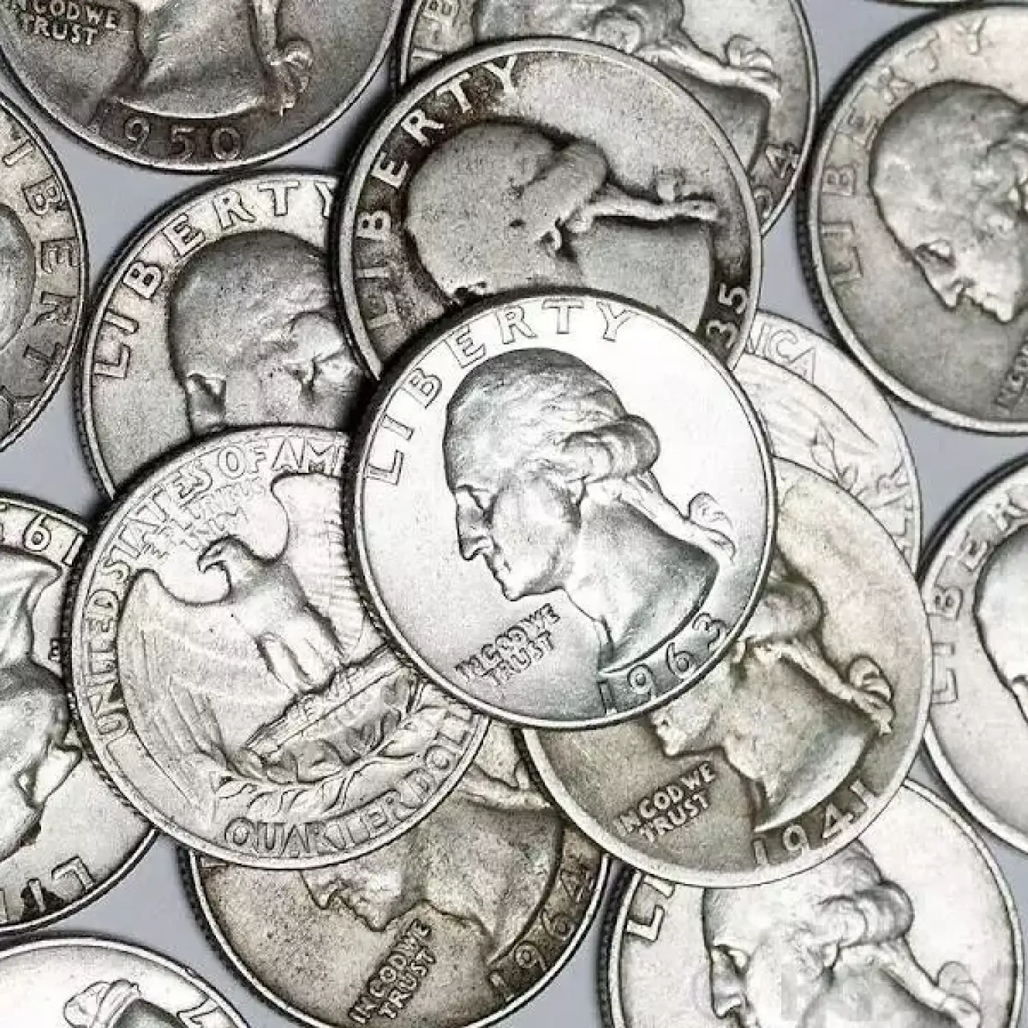 90% Silver Coinage is one of the most popular ways to buy silver. Each face dollar contains .715 ozt of Actual Silver Weight (ASW). It is called 90% silver because it is .900 fine. We sell our quarters by the $1 Face Value. Typically, our quarters are various date Washington Quarters through 1964.