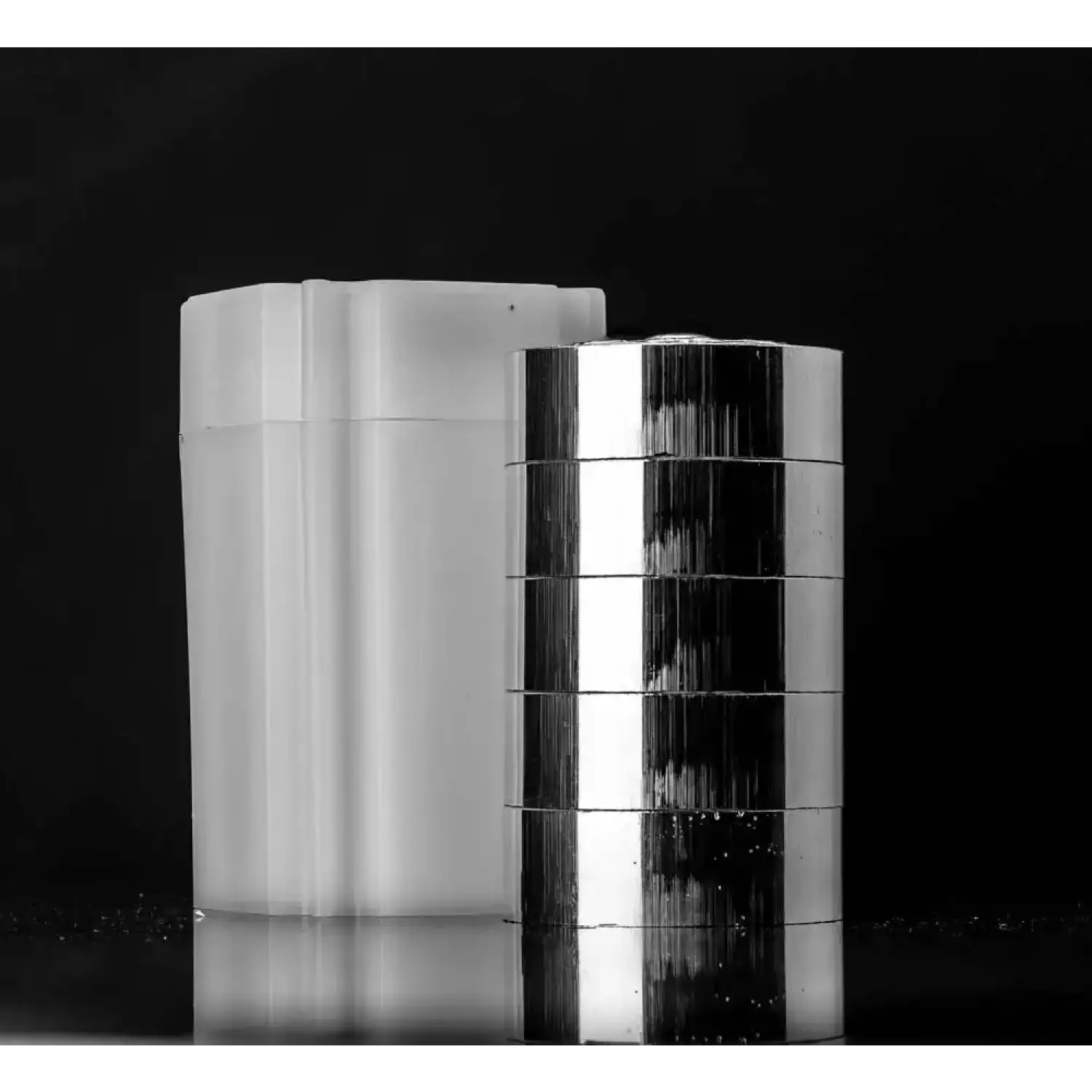 This Scottsdale Mint original Stacker® Round is 5 Troy Ounces of .999 Fine Silver. Stacks & interlocks with both the 2oz and 100g stacker rounds.
