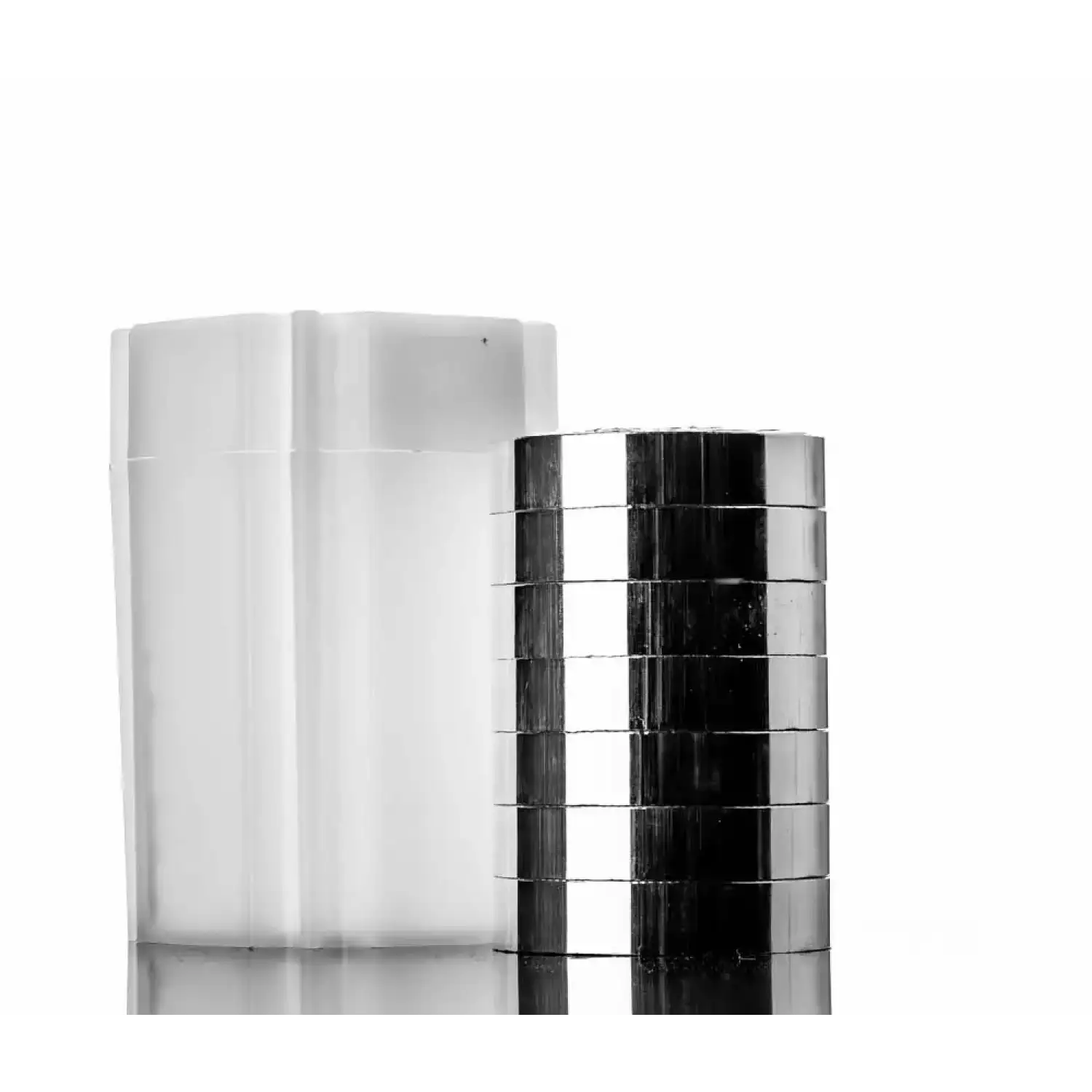 This Scottsdale Mint original Stacker® Round is 100 grams (3.215 Troy Oz) of .999 Fine Silver. Stacks & interlocks with both the 5 oz and 2 oz stacker rounds.