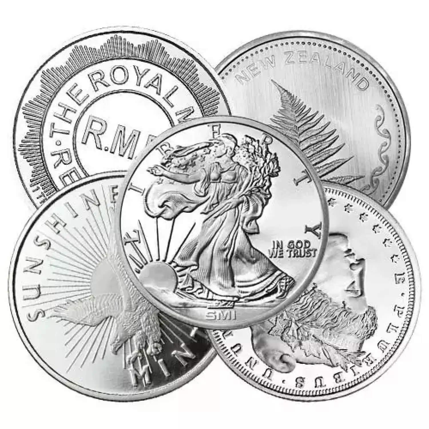 Included in this listing are any number of different designs, ranging from basic replicas of common coins and national symbols to commemorations of events and people. Though the weight and silver content itself will remain static from round to round, the size may vary slightly. Certain mints produce the same amount of silver with a design that may cause one to be larger or smaller in thickness or width.