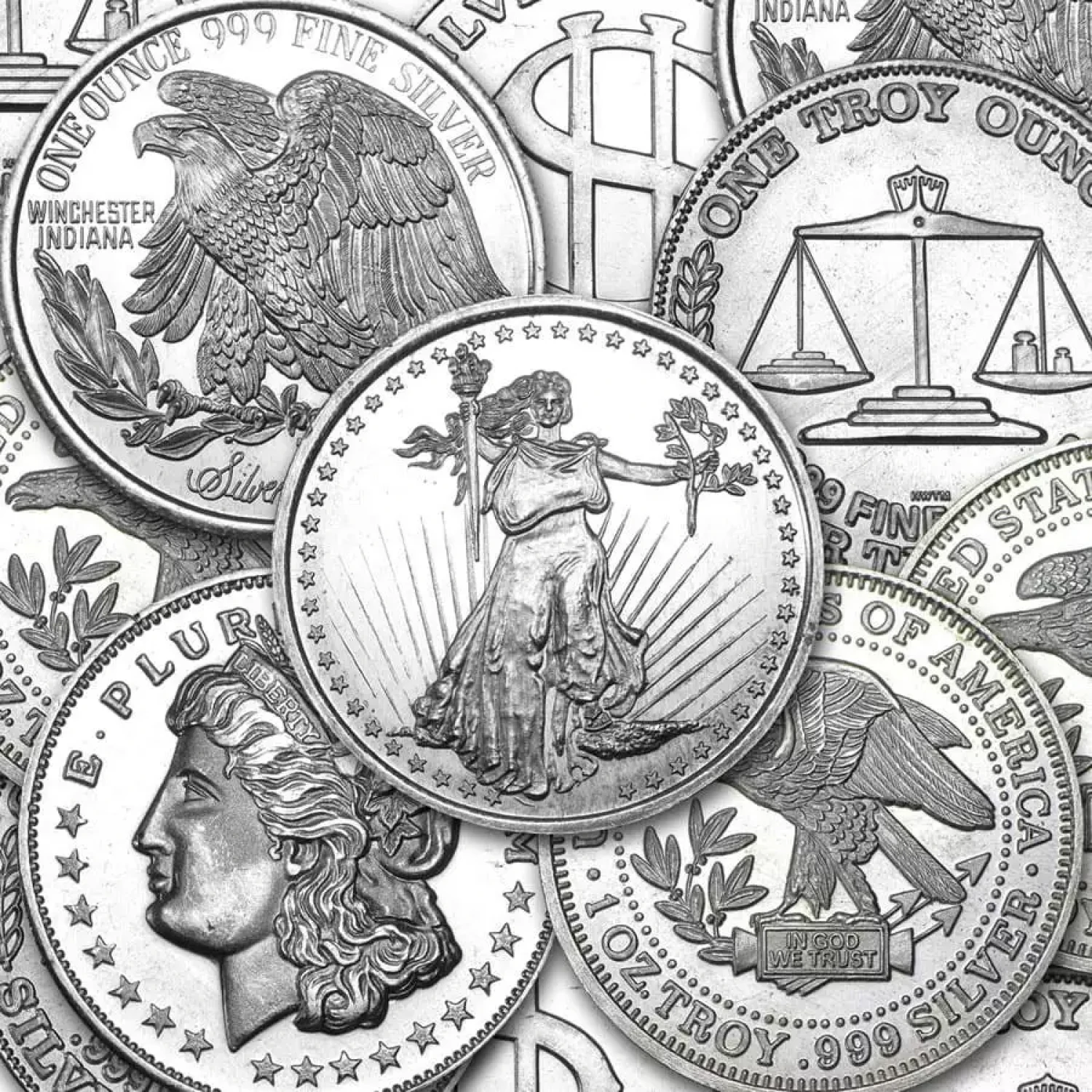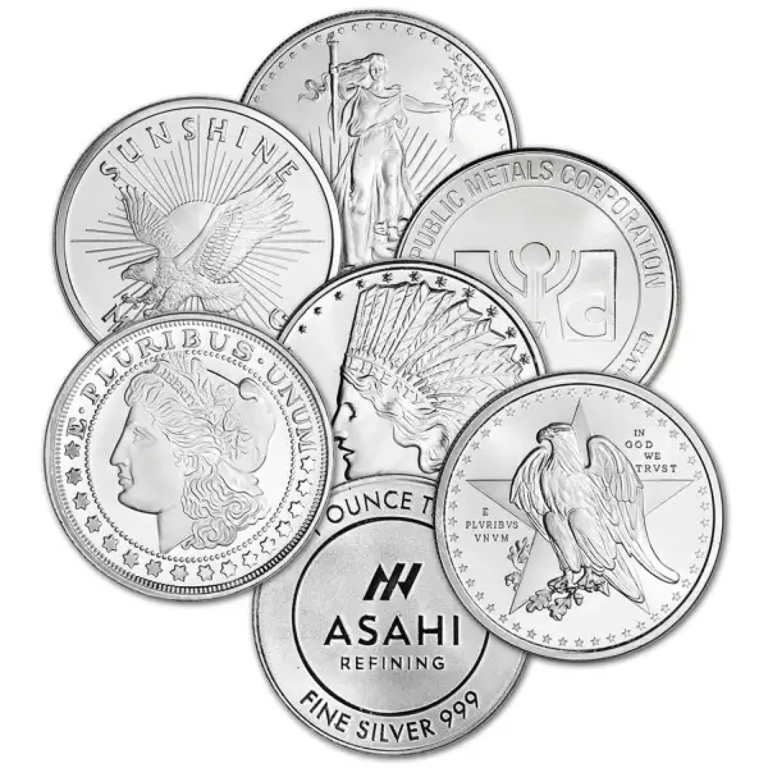 Please Note: These rounds are in varied condition (secondary market) and will likely contain scratches, dings and nicks. Items are picked based on our current inventory and we cannot guarantee a variety of designs. Each round will always contain 1 troy ounce of at least .999 pure silver.