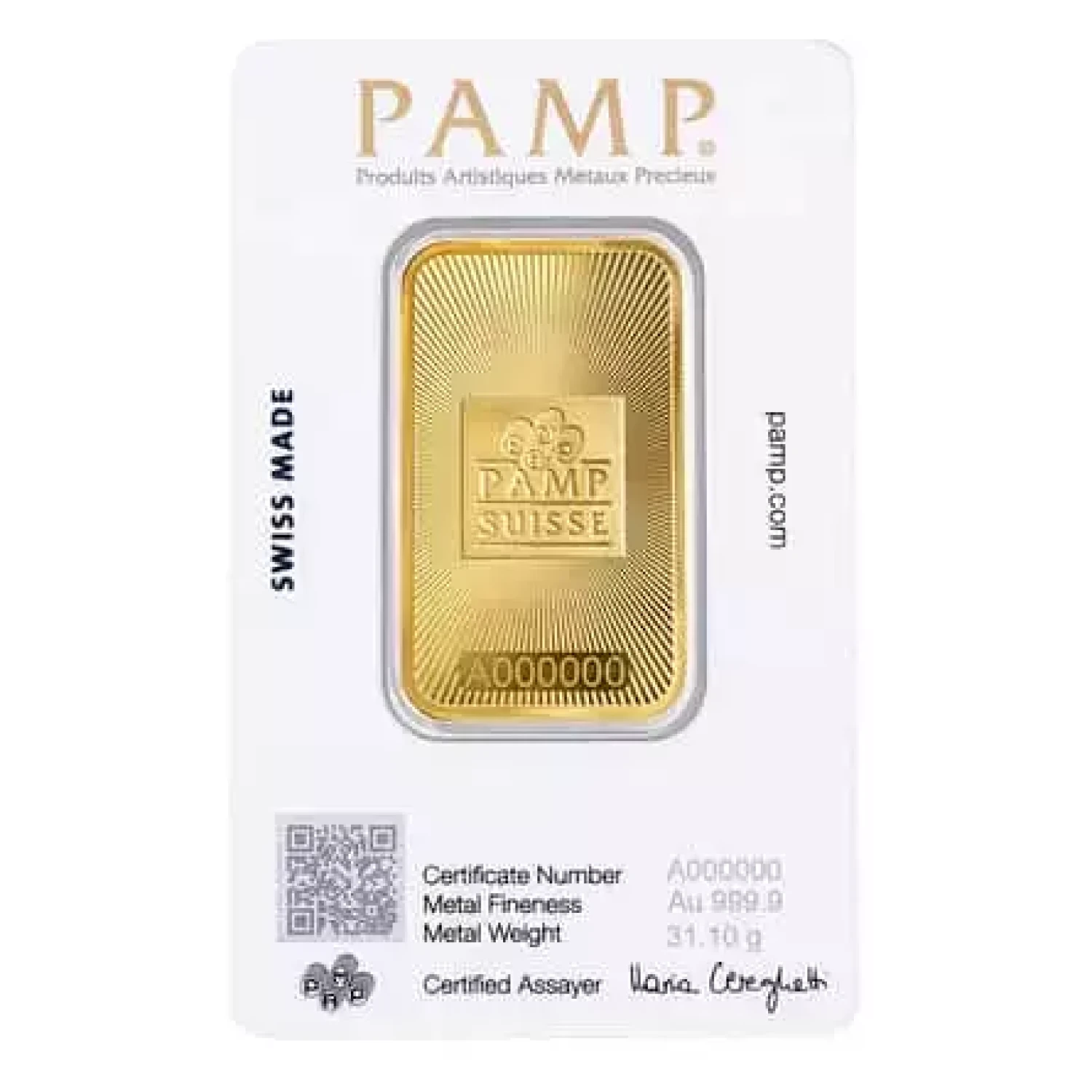 The PAMP Suisse 9999 Pure 1oz Gold Bar is a meticulously crafted and highly sought-after gold bullion product. Produced by the prestigious PAMP Suisse, a renowned Swiss precious metals refinery, this gold bar exudes exceptional quality, purity, and craftsmanship. PAMP Suisse is globally recognized for its commitment to excellence, making their gold bars highly trusted and valued by investors and collectors alike.