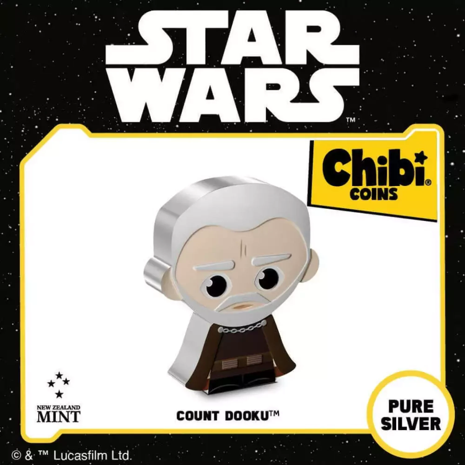 The fallen Jedi™, Count Dooku™ is featured on this fantastic Chibi® Coin. Made from 1oz pure silver, you’ll also have the chance to receive a gold-plated version!