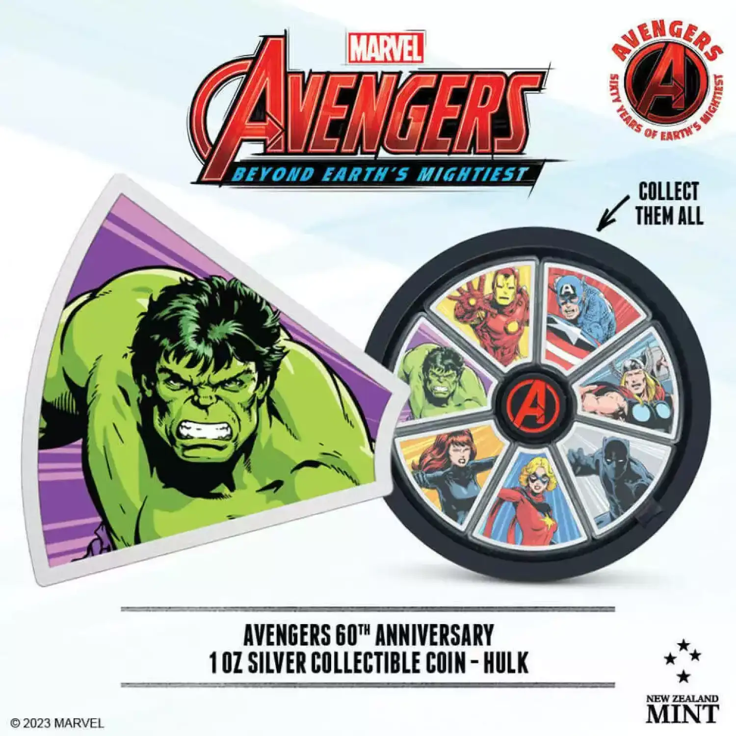 Hulk SMASH! Marvel’s uncontrollable green monster is once again powered by rage on this 1oz pure silver coin. Honour the Avengers 60-year legacy with this officially licensed piece!