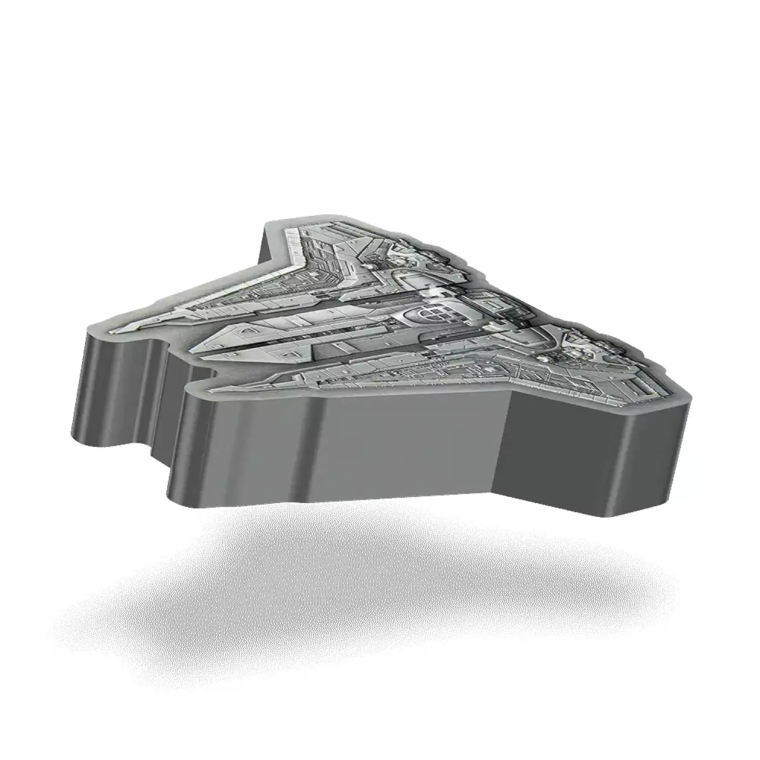 Blast your collection to new heights with Bo-Katan’s Gauntlet Starfighter™ coin! Made from 1oz pure silver, its intricate detailing pays homage to the ship’s unique features.