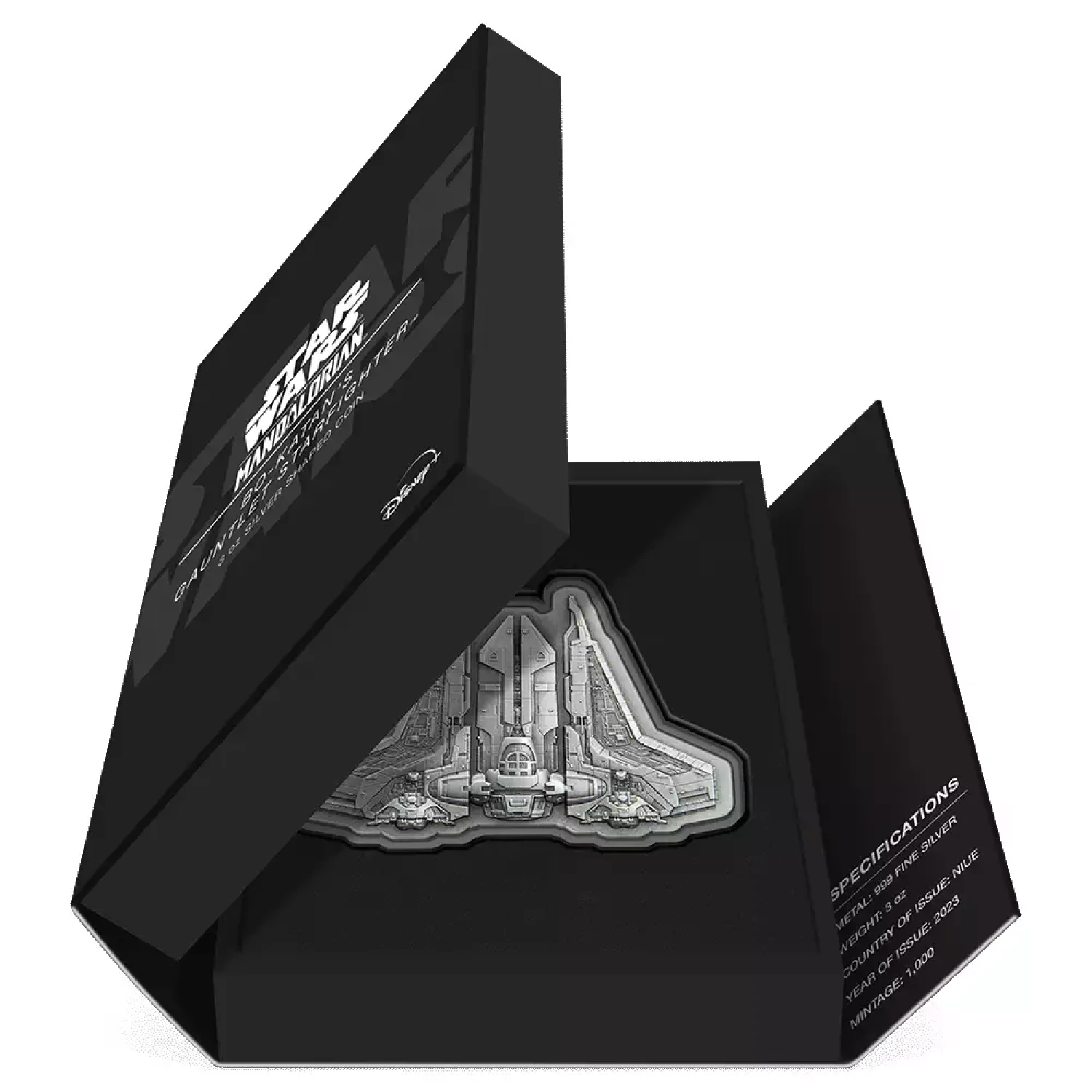 Celebrate a Mandalorian legend with this 3oz pure silver coin! Inspired by Bo-Katan’s Gauntlet Starfighter, fans can imagine the epic battles and scenes from Star Wars: The Mandalorian™.