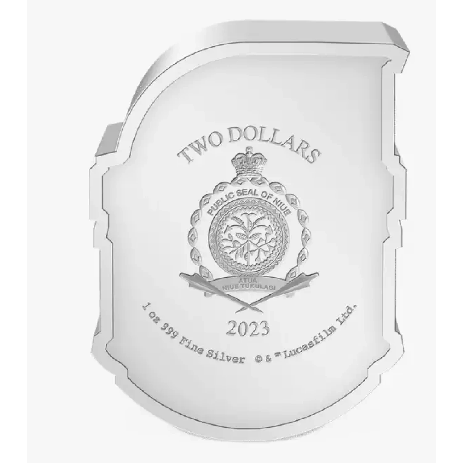 Bo-Katan Kryze wears the helmet that has been in her family for generations. Bring home this 1oz pure silver coin that has been expertly crafted to mimic her iconic headgear today!