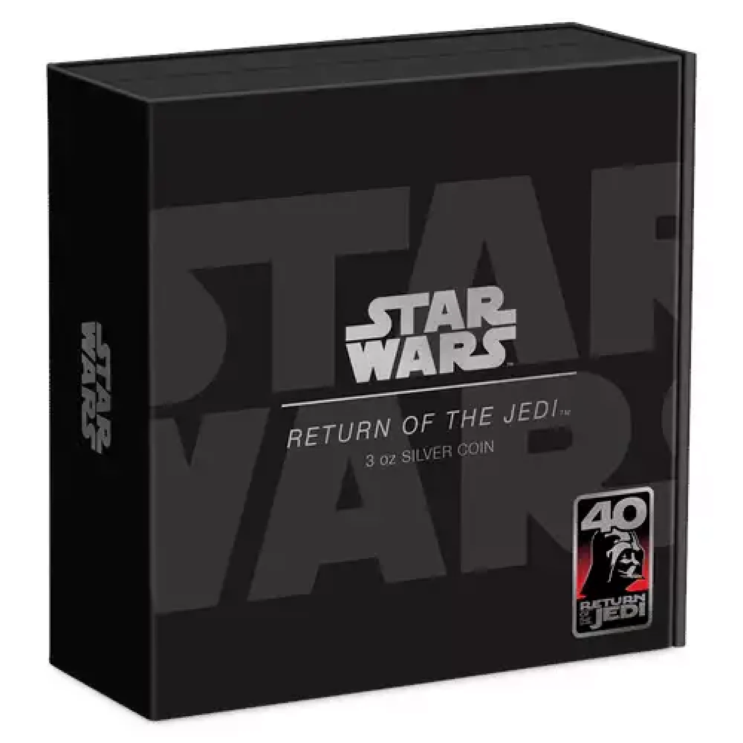 Officially licensed, each coin is held in sleek Star Wars™ branded packaging including the anniversary logo on the front. Printed on the back is a Certificate of Authenticity, along with the coin’s unique number in the limited mintage of 1,983 – reflecting the year the film debuted!