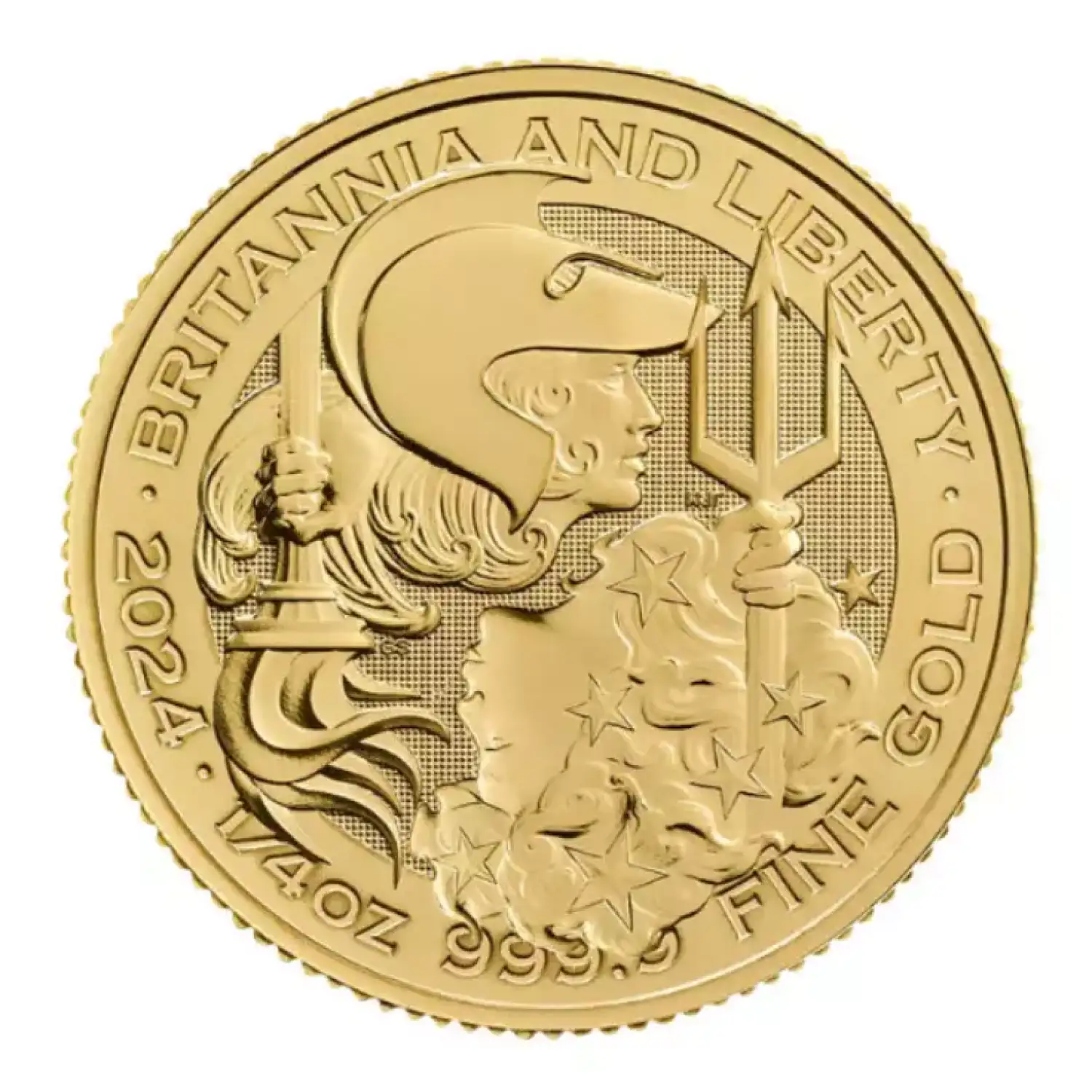 Elegantly crafted, the Britannia 1/4 oz Gold coin showcases an iconic design that embodies beauty and trust. The 2024 Great Britain 1/4 oz Gold Britannia continues this storied tradition.