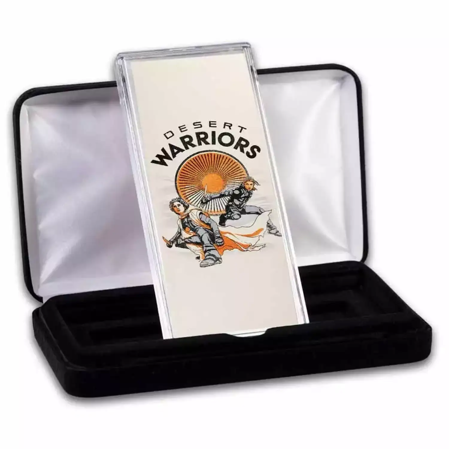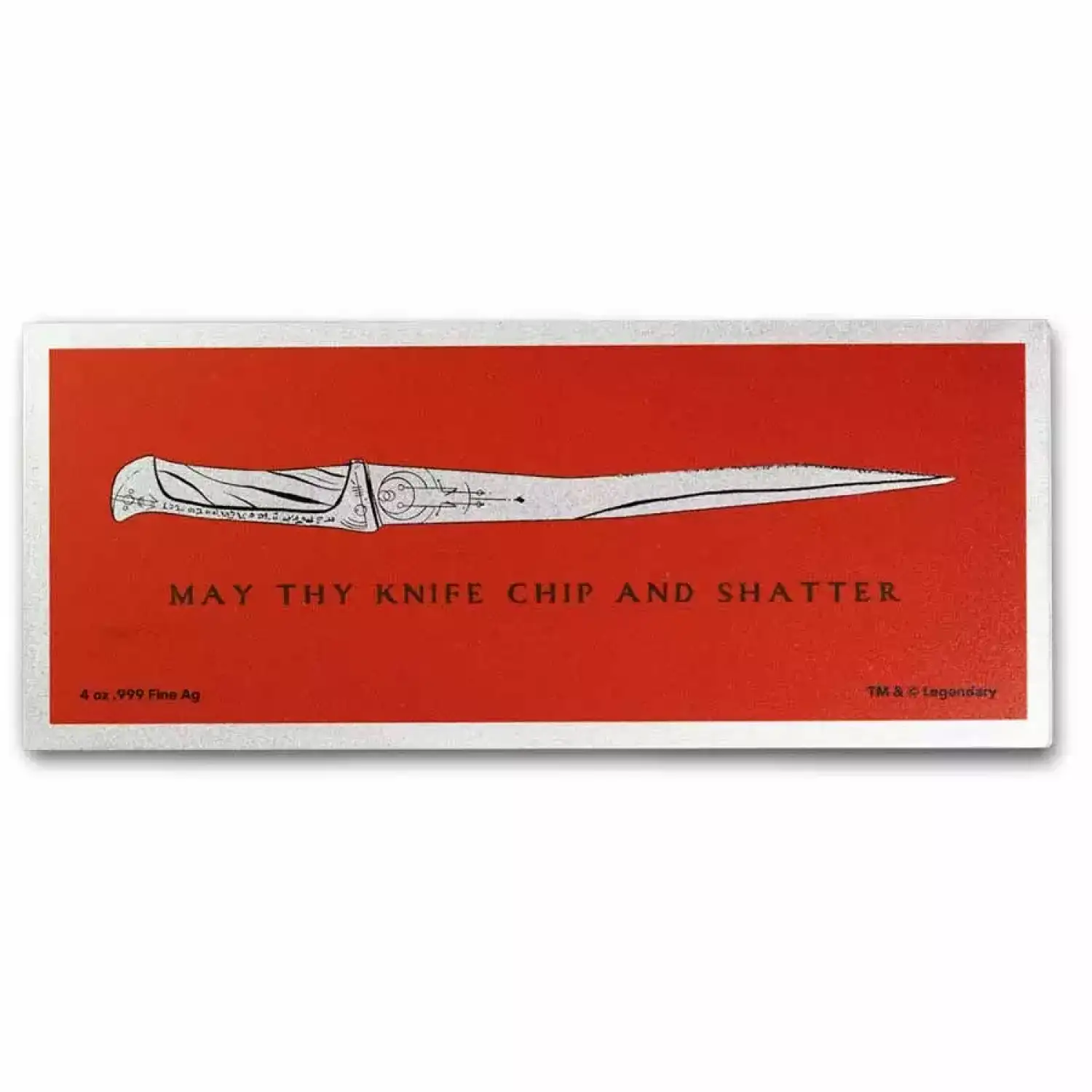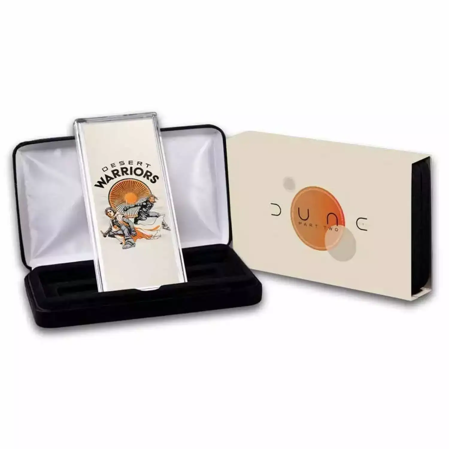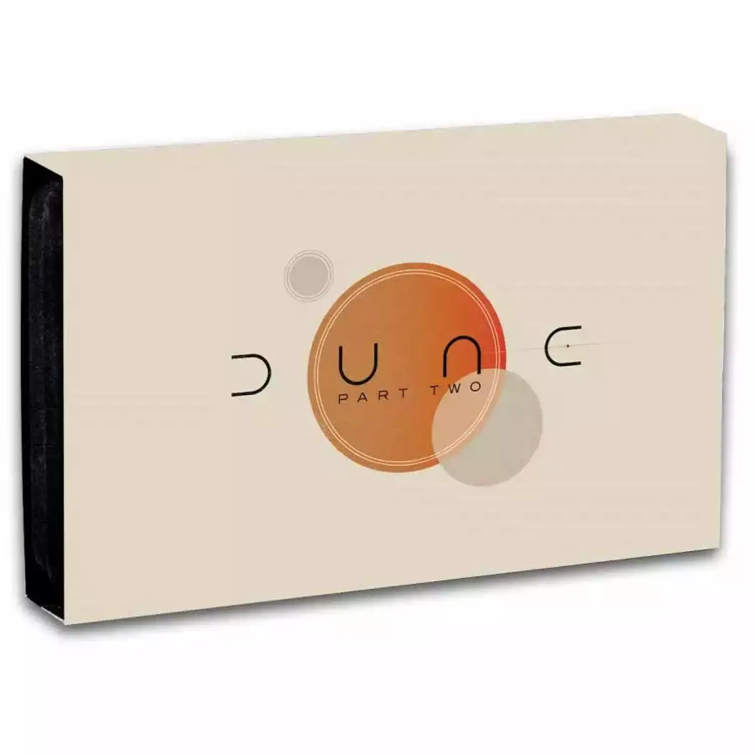 DUNE® 2 is a 2024 major motion picture release. APMEX has partnered with Legendary Entertainment to bring the iconic characters, themes and landscapes to life with a limited Fighter Set, House Set, collectible 4 oz bars, colorized silver bars, struck silver rounds and colorized silver rounds in TEP packaging.