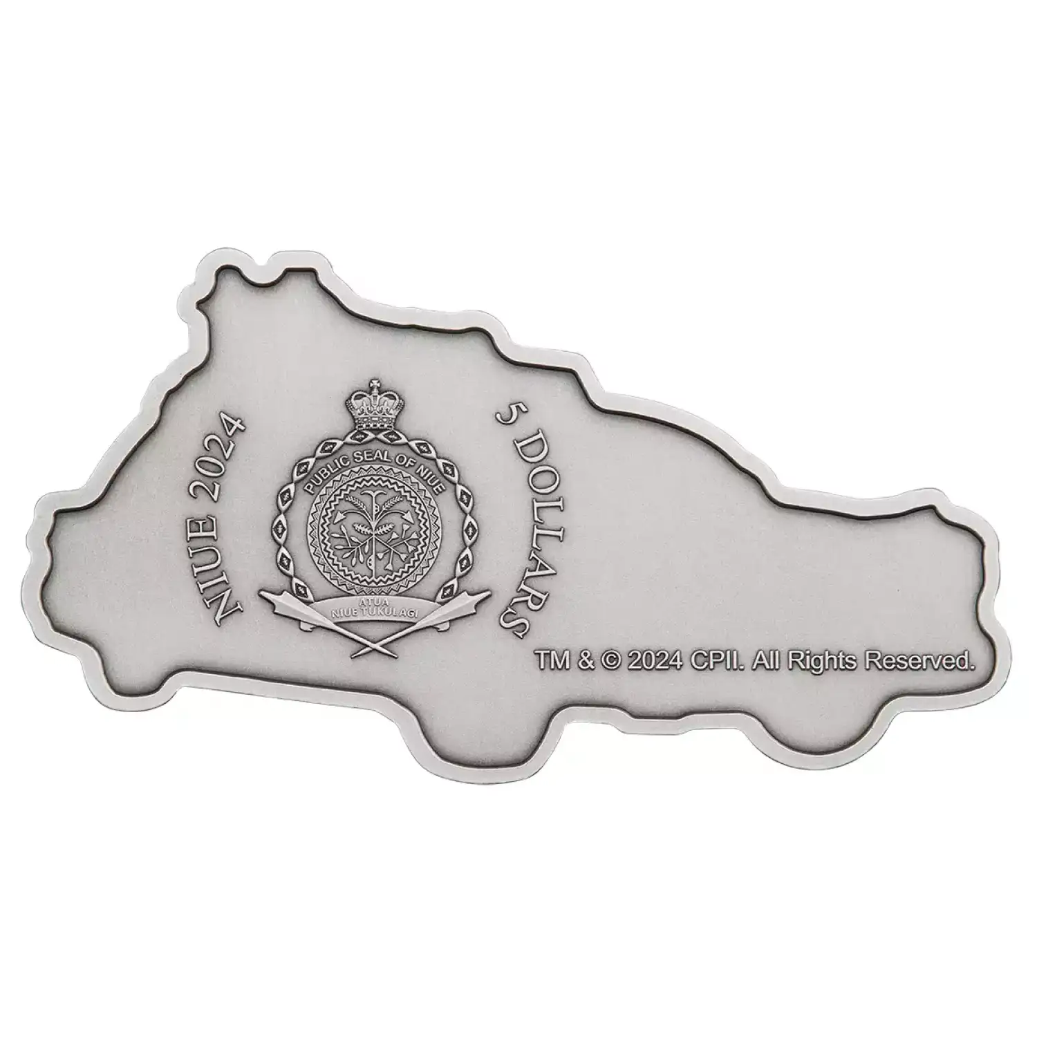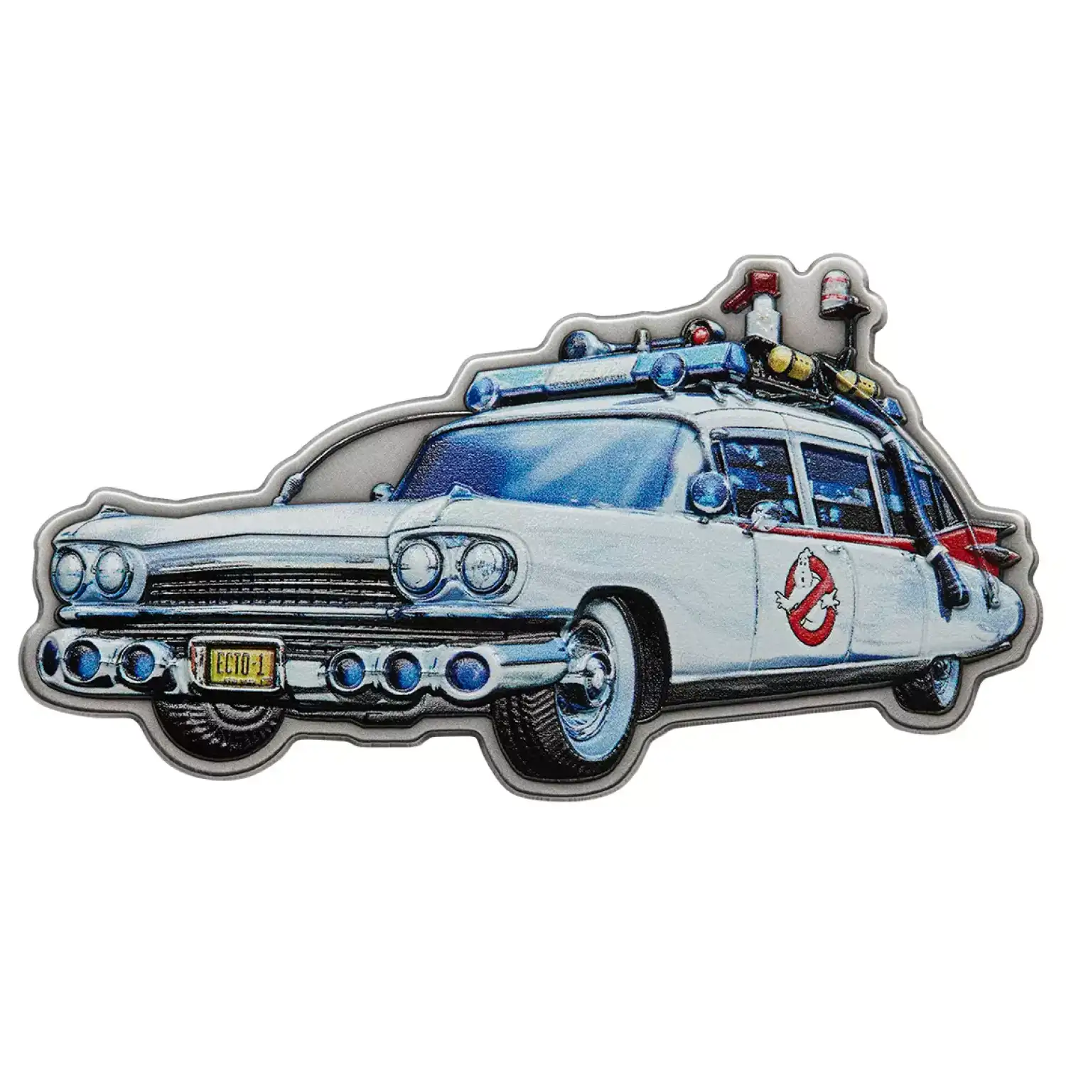Introducing the 2024 Niue Ghostbusters Ecto 1 2oz Silver Shaped Coin, a meticulously crafted tribute to the iconic Ecto-1 from the beloved Ghostbusters franchise. This officially licensed coin captures the essence of the legendary vehicle with stunning detail and precision. Struck from 2 ounces of .999 fine silver, this unique coin is shaped to replicate the Ecto-1, complete with intricate design elements that pay homage to the original car. With a limited mintage, it's a must-have collectible for Ghostbusters enthusiasts and coin collectors alike. Whether displayed as a centerpiece or added to a collection, this coin is sure to delight fans of all ages with its nostalgic charm and impeccable craftsmanship.