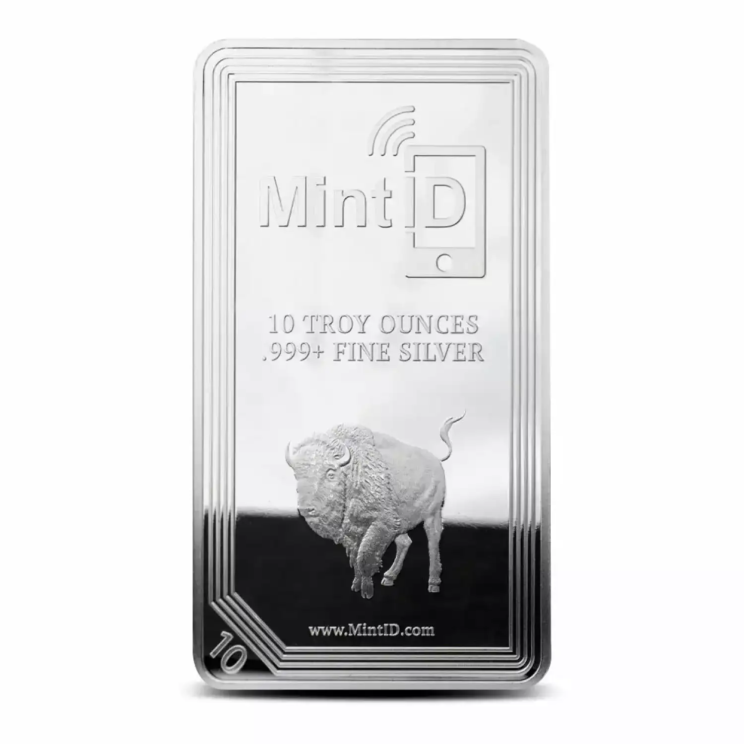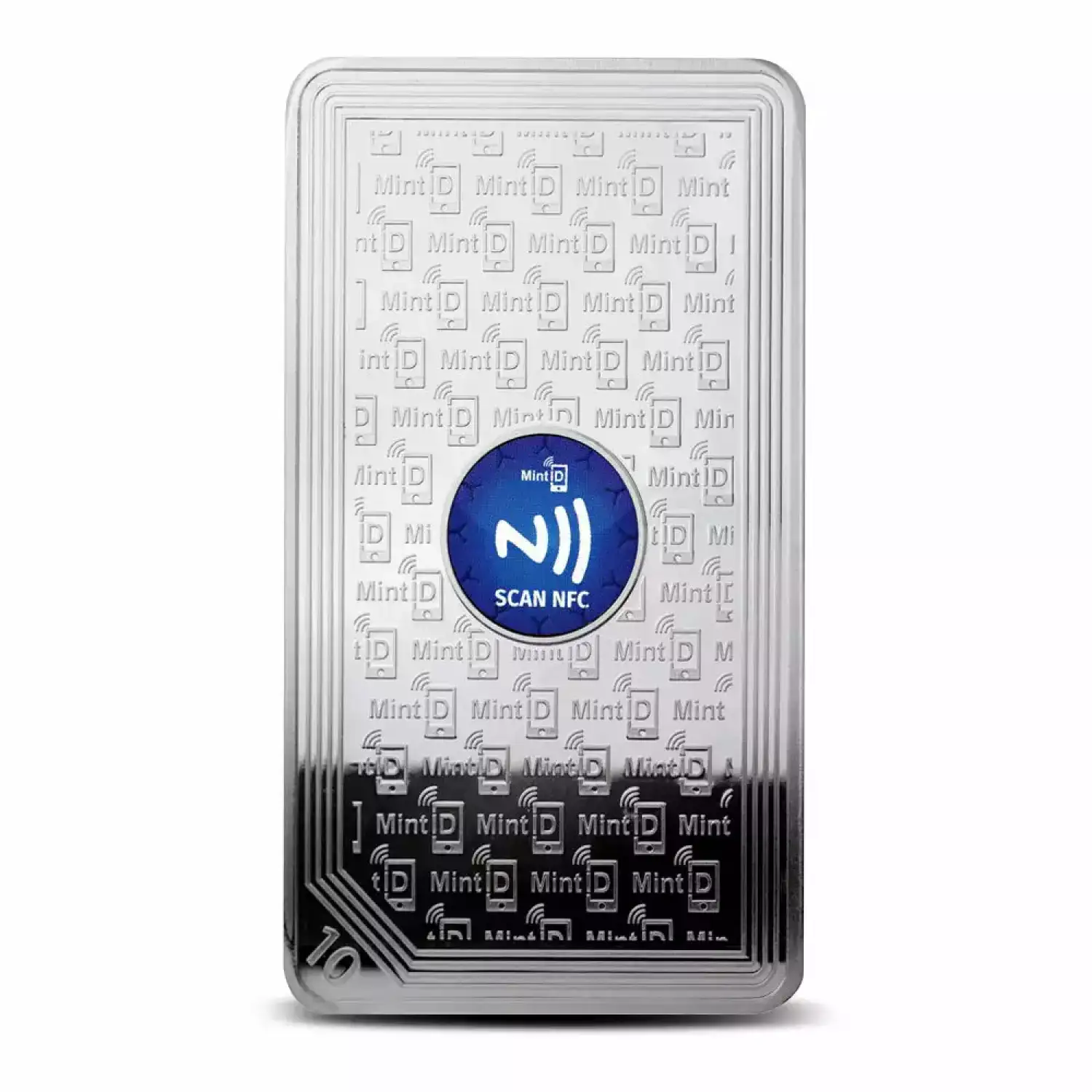 MintID offers an innovative bullion security solution, allowing you to instantly and securely authenticate your silver and gold bullion. By partnering with top-rated, ISO-9001 certified minting facilities, MintID integrates secure microchips directly onto silver rounds and bars, including the new 10 oz silver bars featured here. Each MintID microchip stores a unique digital profile for your 10 oz MintID Silver Bar. This blue microchip can be scanned with the MintID app, providing secure access to your bar's digital profile. The microchips utilize NFC technology and AES 128-bit encryption to ensure security. They are also designed to be tamper-evident, becoming inoperative or indicating tampering if interfered with. The MintID app requires iOS 13.0 or later or Android 4.2 or later.