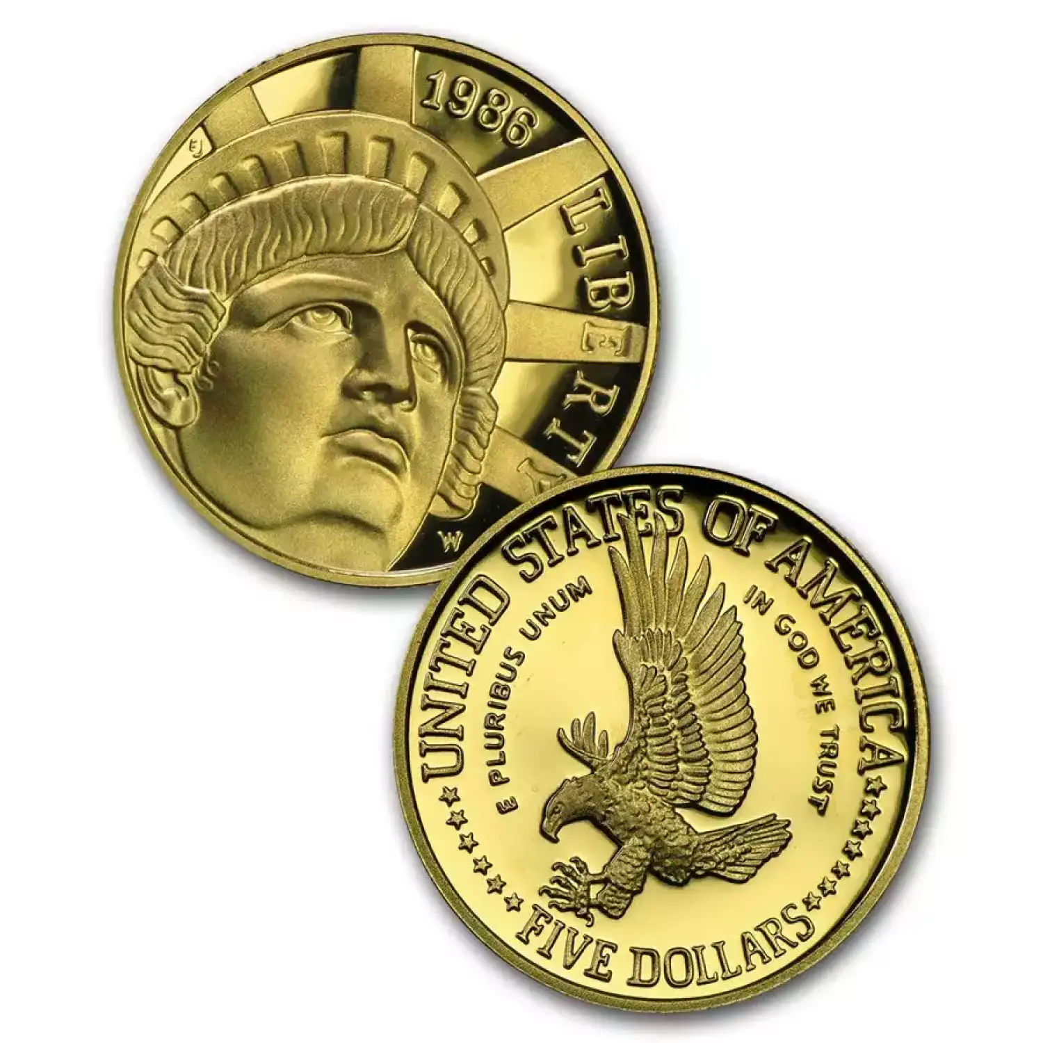 - Obverse: The $5 Gold coin showcases the head of the Statue from below. The Silver dollar features a frontal view of the Statue of Liberty. The half dollar depicts the New York skyline.