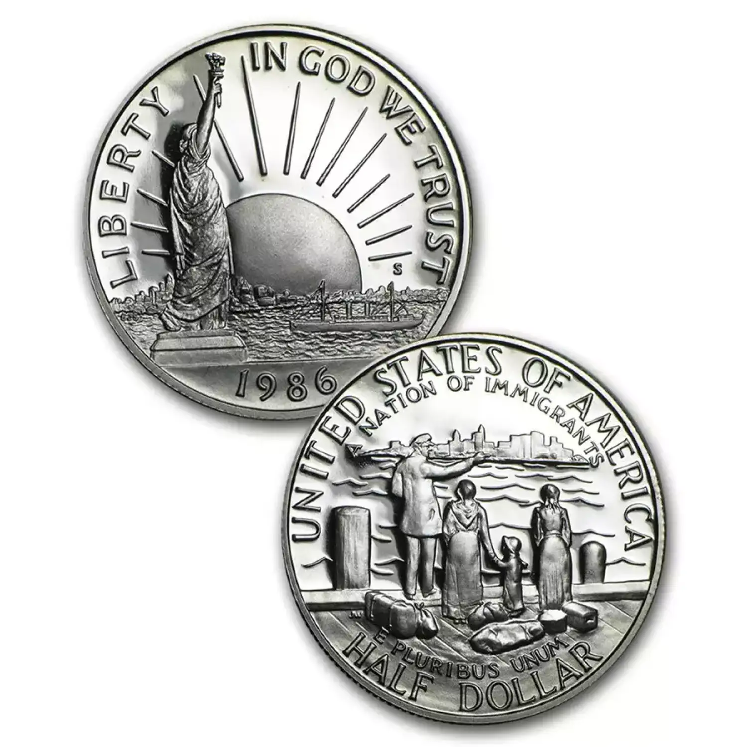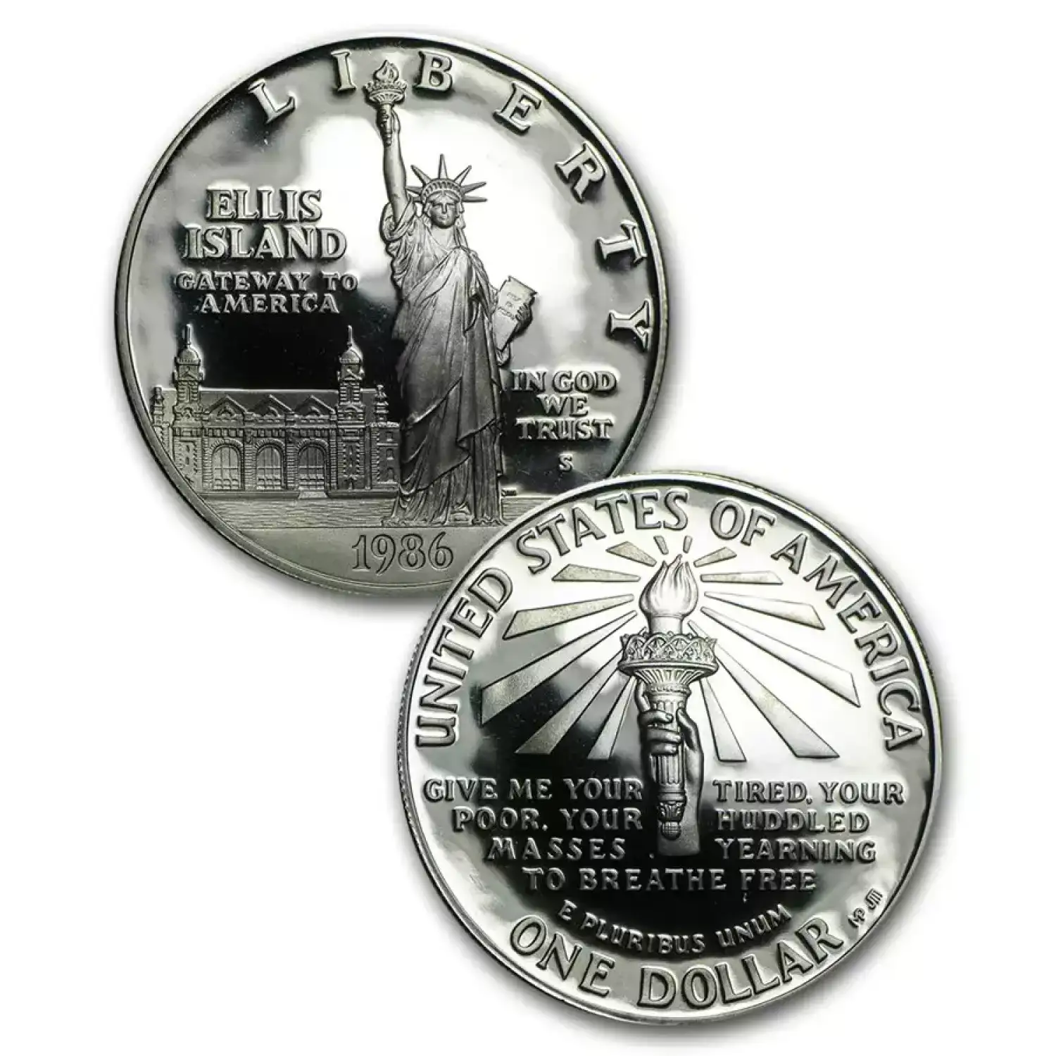 This 3-coin set commemorates the 100th anniversary of the Statue of Liberty, featuring the first U.S. government-issued coins depicting the Statue of Liberty and Ellis Island.