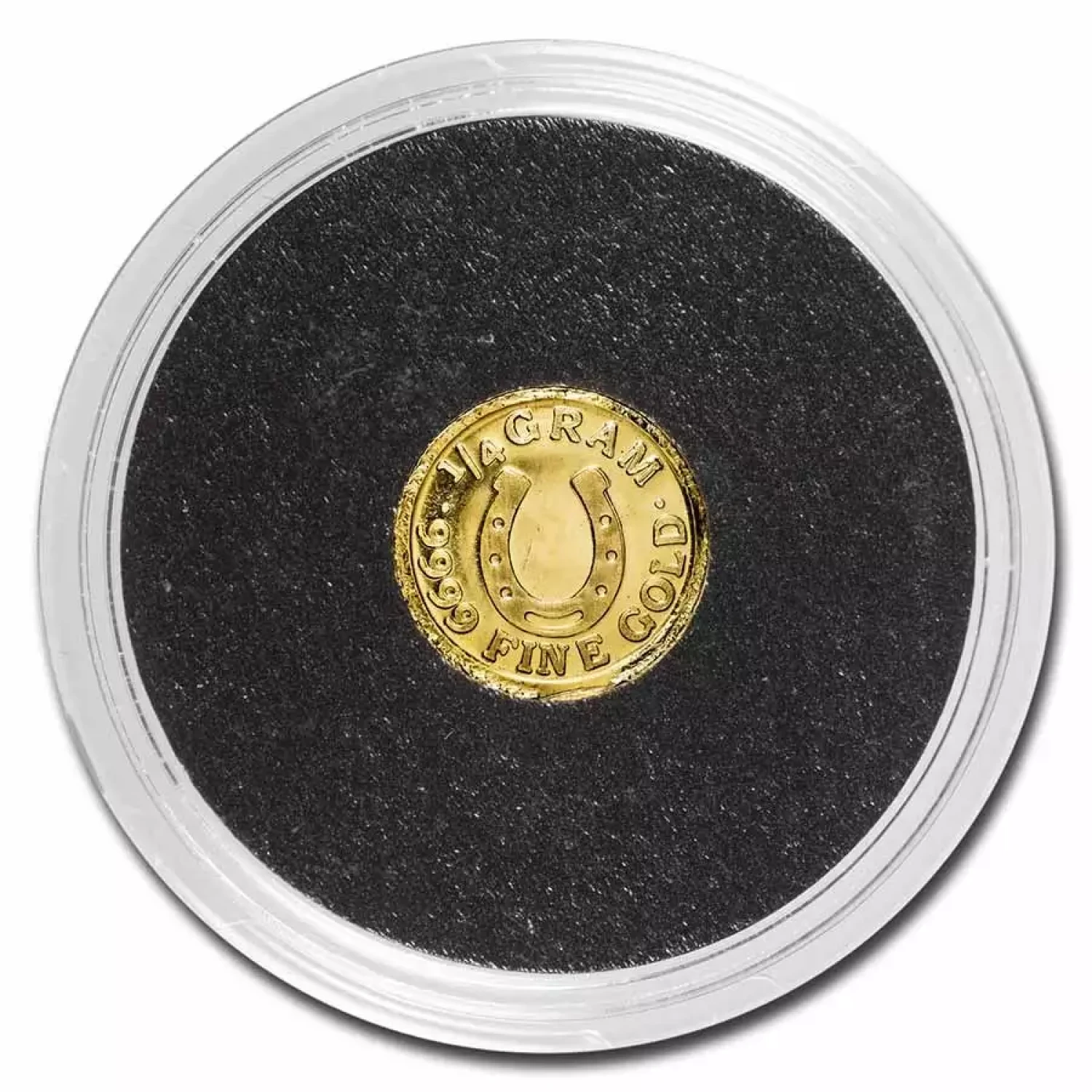 - Obverse: Features a horseshoe design with "1/4 gram" and ".9999 Fine Gold" inscribed along the top and bottom.