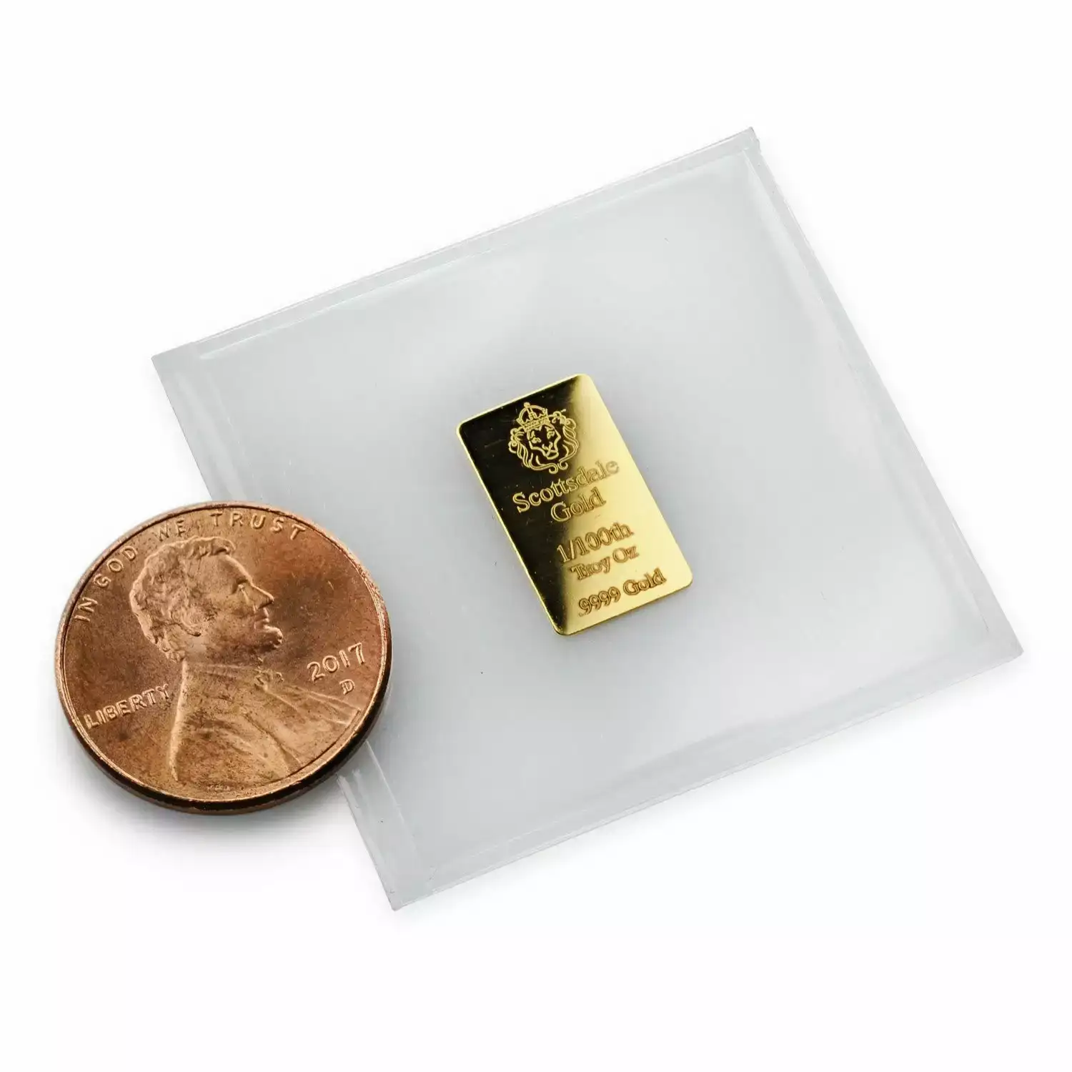 These 1/100th Troy Ounce Gold bars are the smallest mass-produced Gold bars on the market! Crafted with exceptional quality by the Scottsdale Mint, each bar showcases the iconic Scottsdale Mint Lion alongside its gold weight and purity.