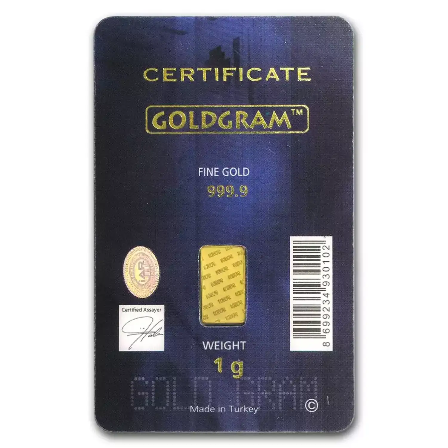 - Obverse: Features the IGR logo within an oval, along with the weight, purity, and Istanbul Gold Refinery stamp.