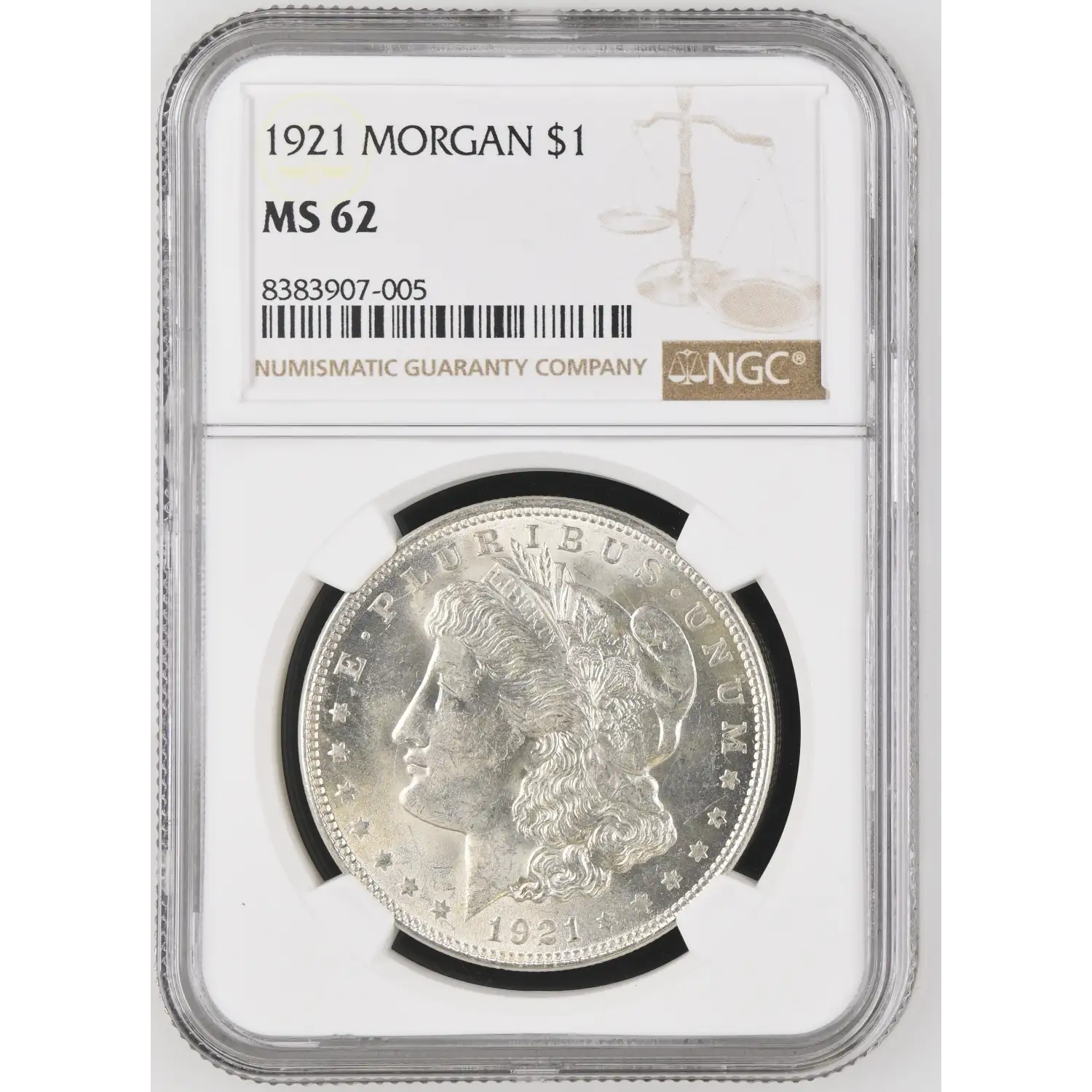 The 1921 Morgan Silver Dollar is a highly sought-after numismatic coin from the United States. Graded by NGC as MS-62, this historic silver dollar boasts exceptional quality and preservation, with minimal signs of wear and high detail. Owning this well-preserved coin is a chance to possess a piece of American numismatic history.