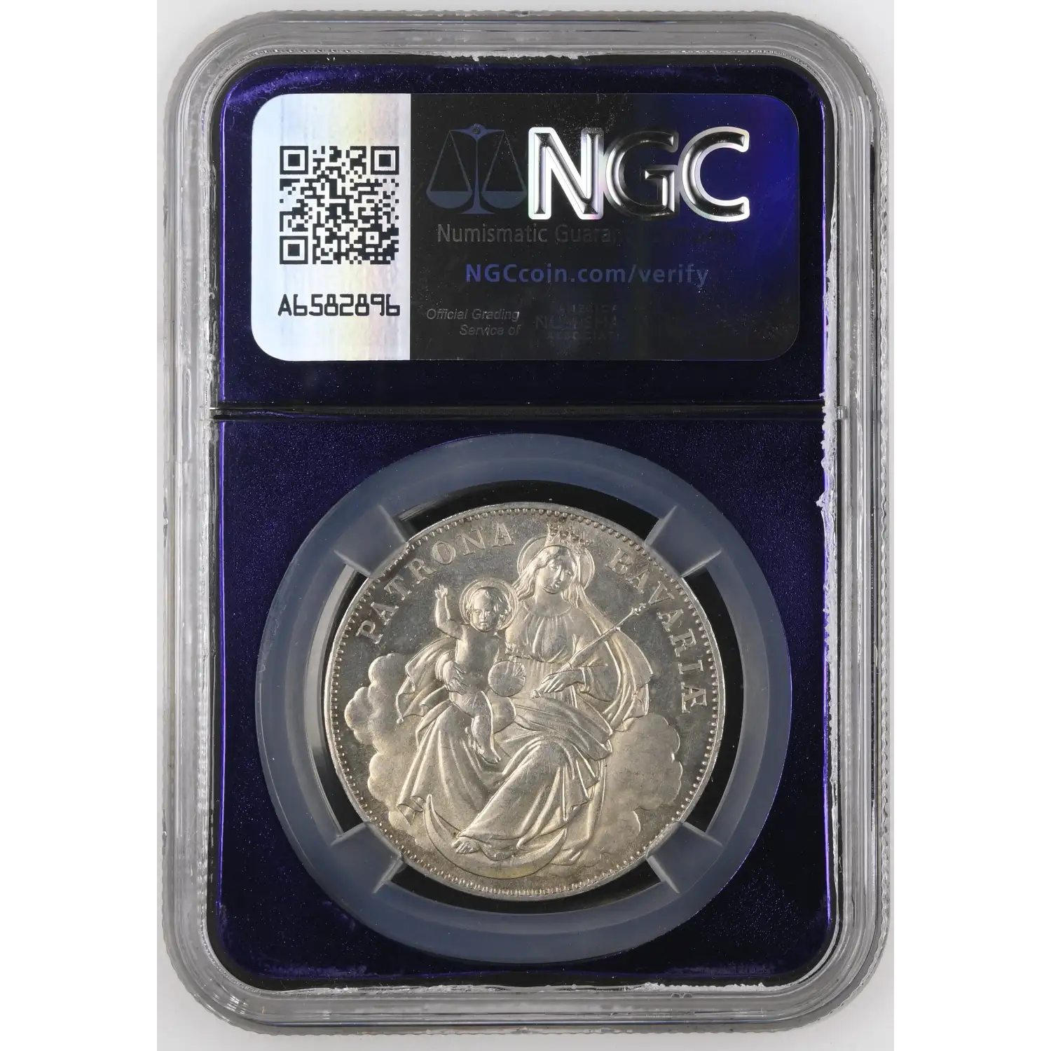 Hailing from the Bavarian region, this Thaler coin features the iconic image of the Madonna on its reverse side. The intricate details and the striking purple core toning make it a true masterpiece of numismatic art.