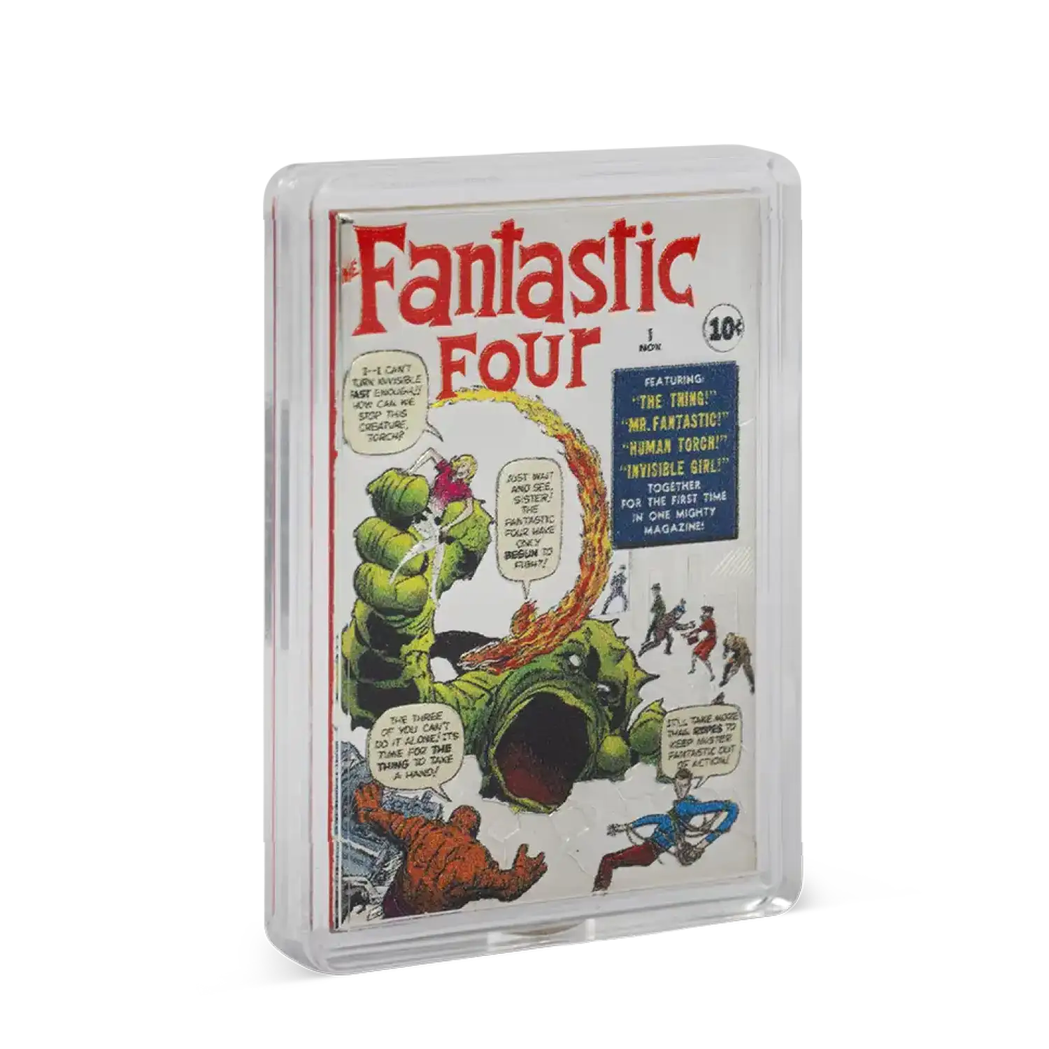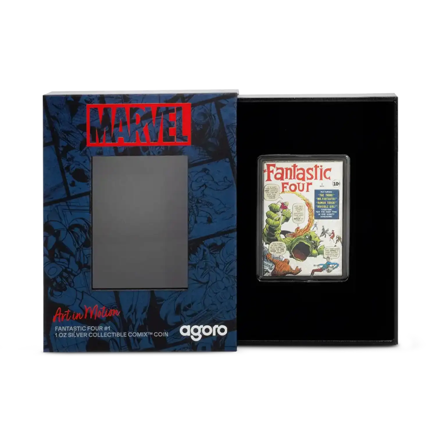 The comic that started it all. This 1oz .999 pure silver collectible recreates the iconic cover of Fantastic Four #1 — the debut of Marvel’s First Family and the dawn of the modern superhero era. It marks the first release in our COMIX: Art in Motion series, celebrating the bold artistry that defined comic book history.
