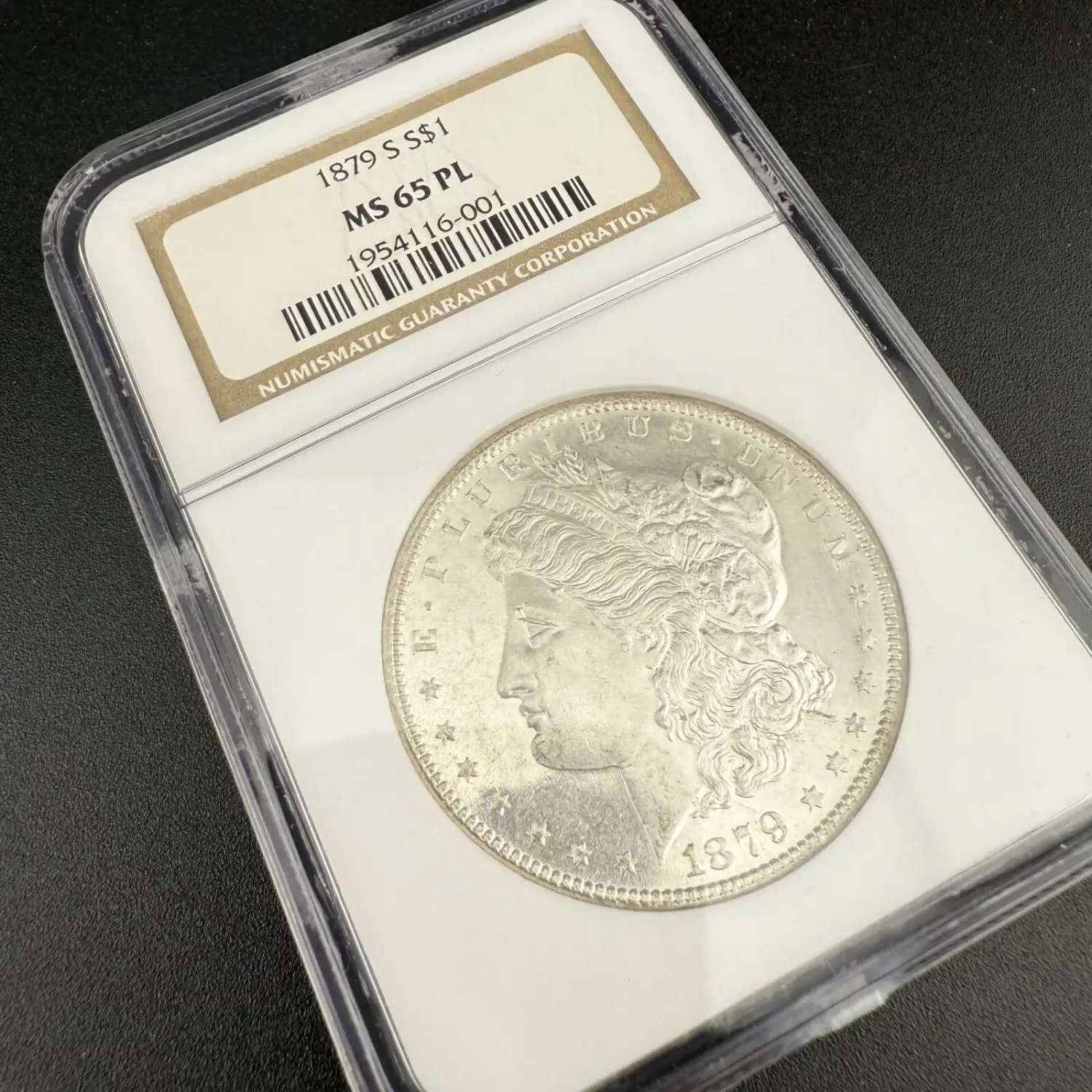 Introducing the captivating 1879 S Morgan Silver Dollar, graded NGC MS-65 PL, a true gem from the United States Mint. This remarkable numismatic coin is a testament to the rich history and artistry of American coinage.