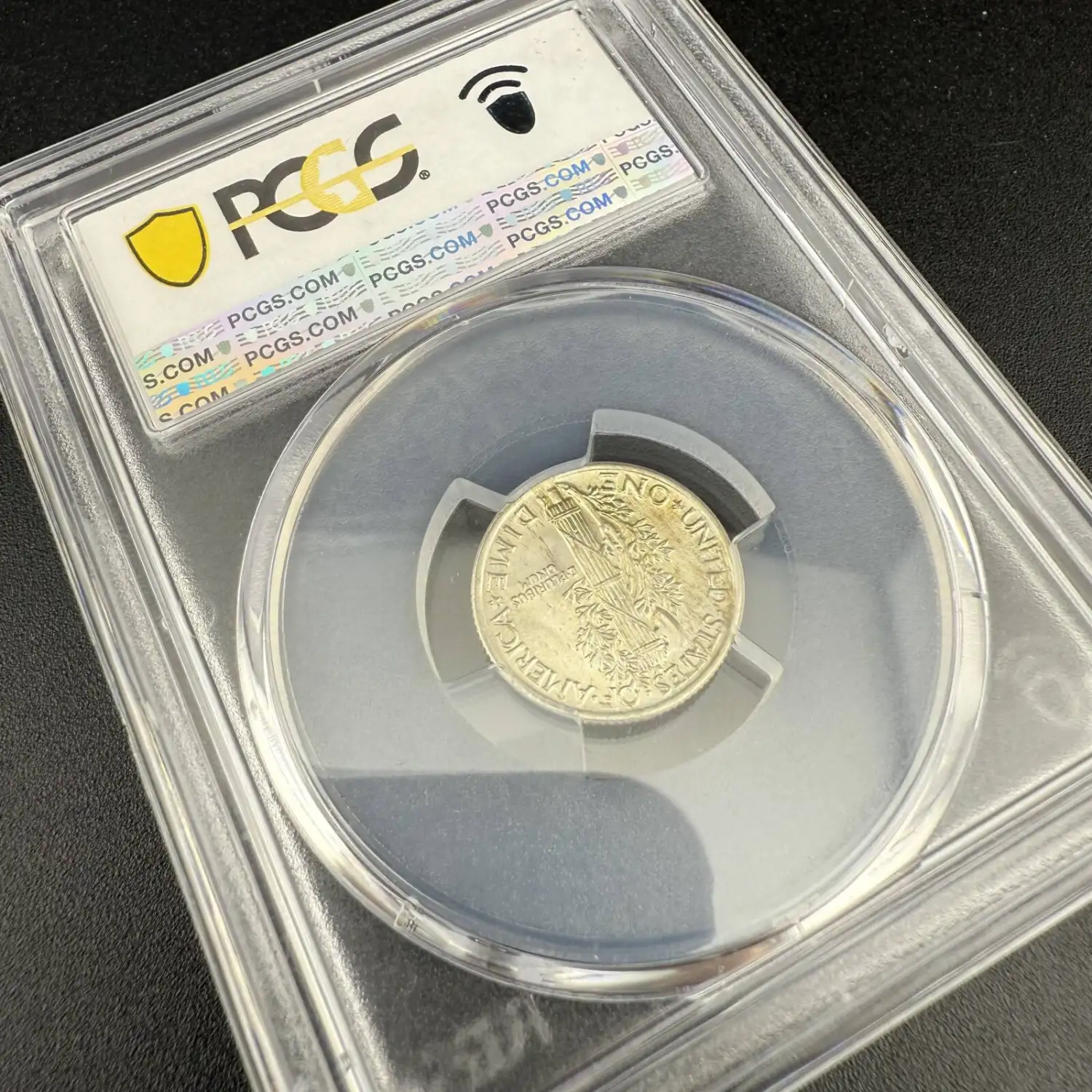 The Mercury Dime, designed by Adolph A. Weinman, is a revered symbol of American numismatics. This PCGS-certified example stands out for its exceptional condition.