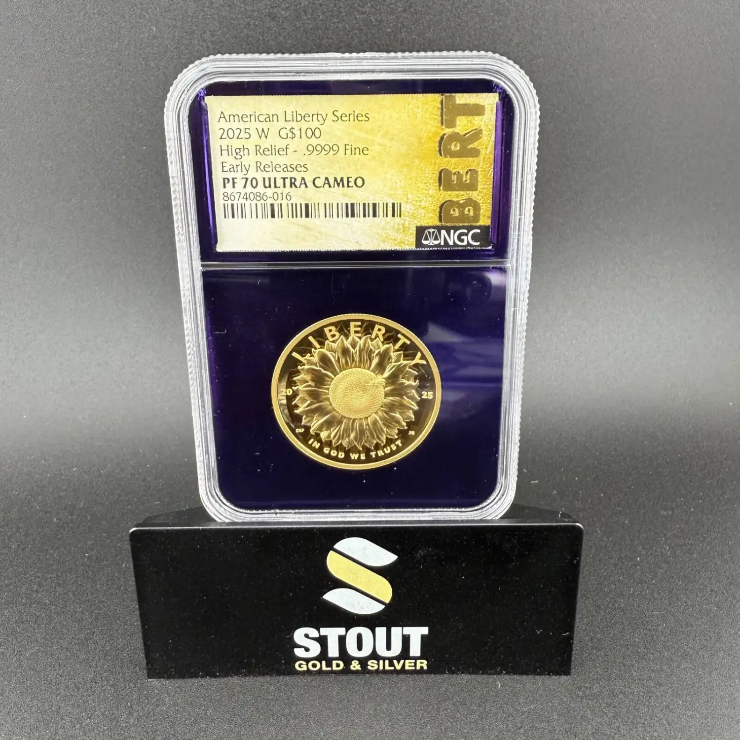 Introducing the '2025 W 1oz Gold American Liberty Medal | Sunflower NGC PF-70 Ultra Cameo Purple Core', a stunning numismatic coin that embodies the spirit of American heritage and the beauty of nature. Crafted with precision, this exceptional coin is a must-have for collectors and enthusiasts.