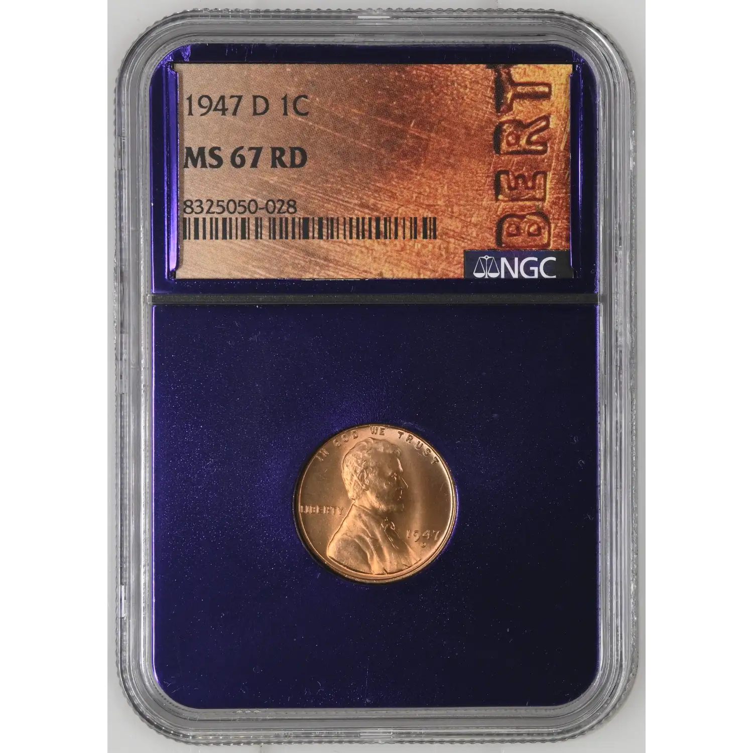 The 1947 D Small Cents Lincoln, Wheat Ears Reverse NGC MS-67 Bert Purple Core RD is a sought-after specimen, with its exceptional grade and unique coloration making it a true standout in any collection. Owning this coin is a privilege and an opportunity to possess a piece of American numismatic history.