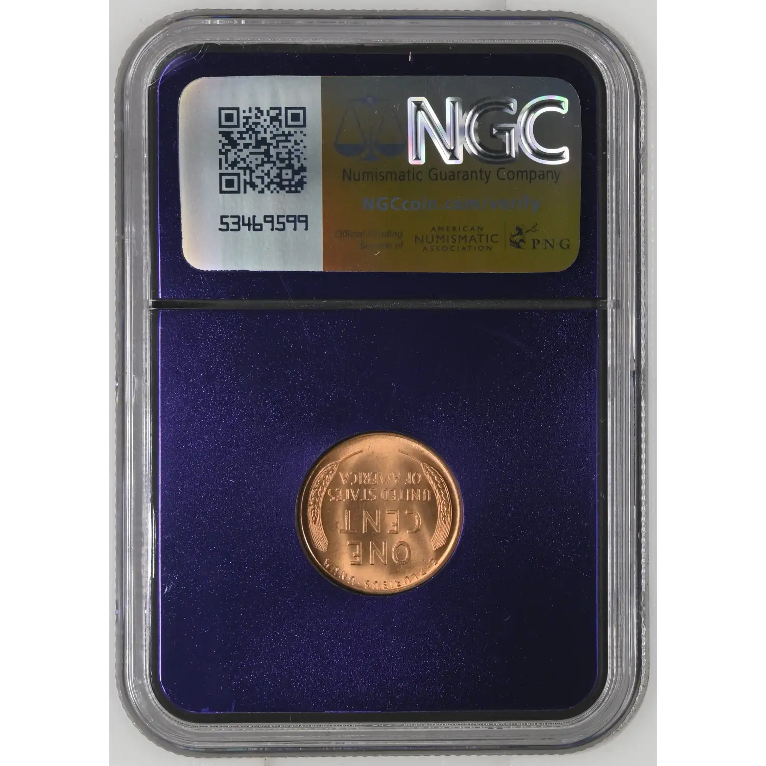 Minted in Denver, Colorado, this small cent features the iconic Lincoln obverse and the classic Wheat Ears reverse. Graded by the prestigious NGC as MS-67, this coin is in exceptional condition, with a brilliant Bert Purple core that adds to its visual appeal and collectability.