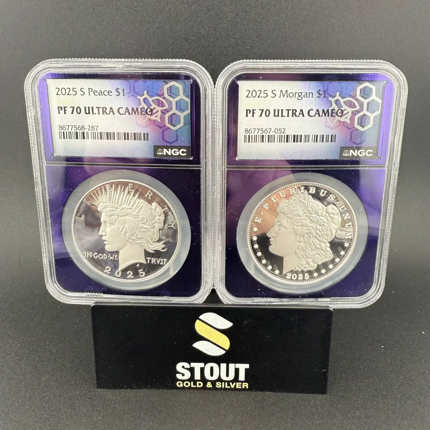 Don't miss the opportunity to add this exceptional '2025 S Morgan & Peace Dollar Proof 2 Coin Set NGC PF-70 ULTRA CAMEO' to your collection. These proof coins are a testament to the enduring legacy of American coinage.
