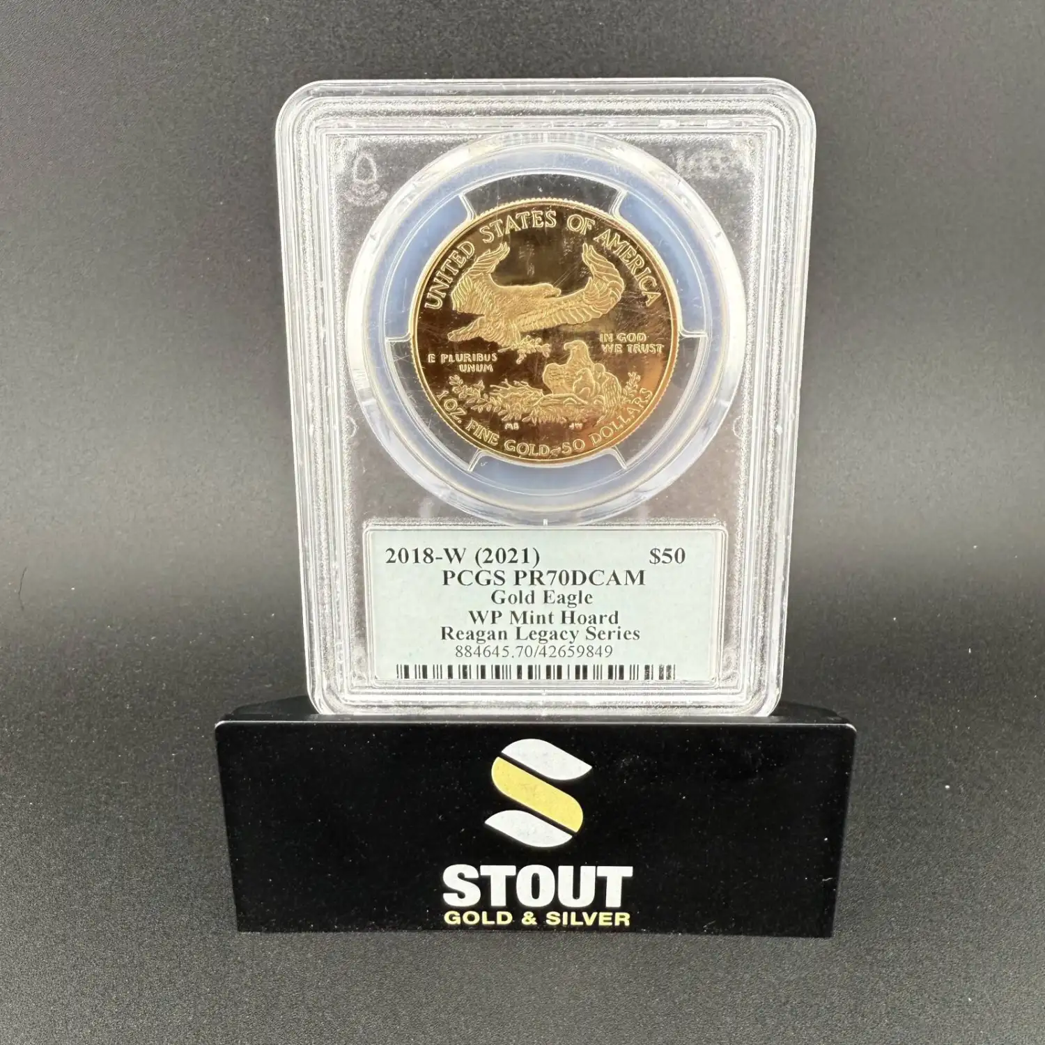 Graded PCGS PR-70, the highest possible grade, this limited-edition coin bears the sought-after "W" mint mark from the prestigious West Point Mint and is part of the renowned Michael Reagan West Point Mint Hoard, further enhancing its value and desirability.
