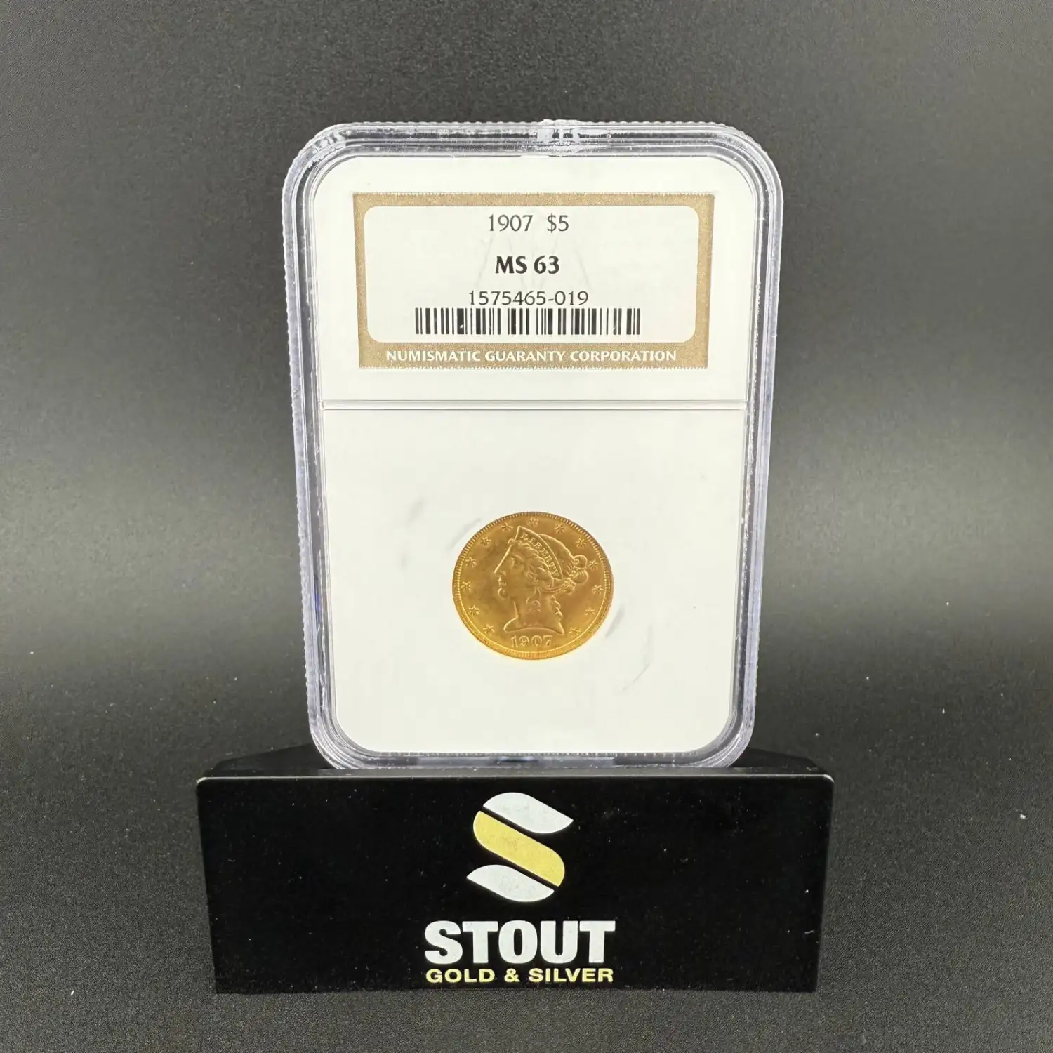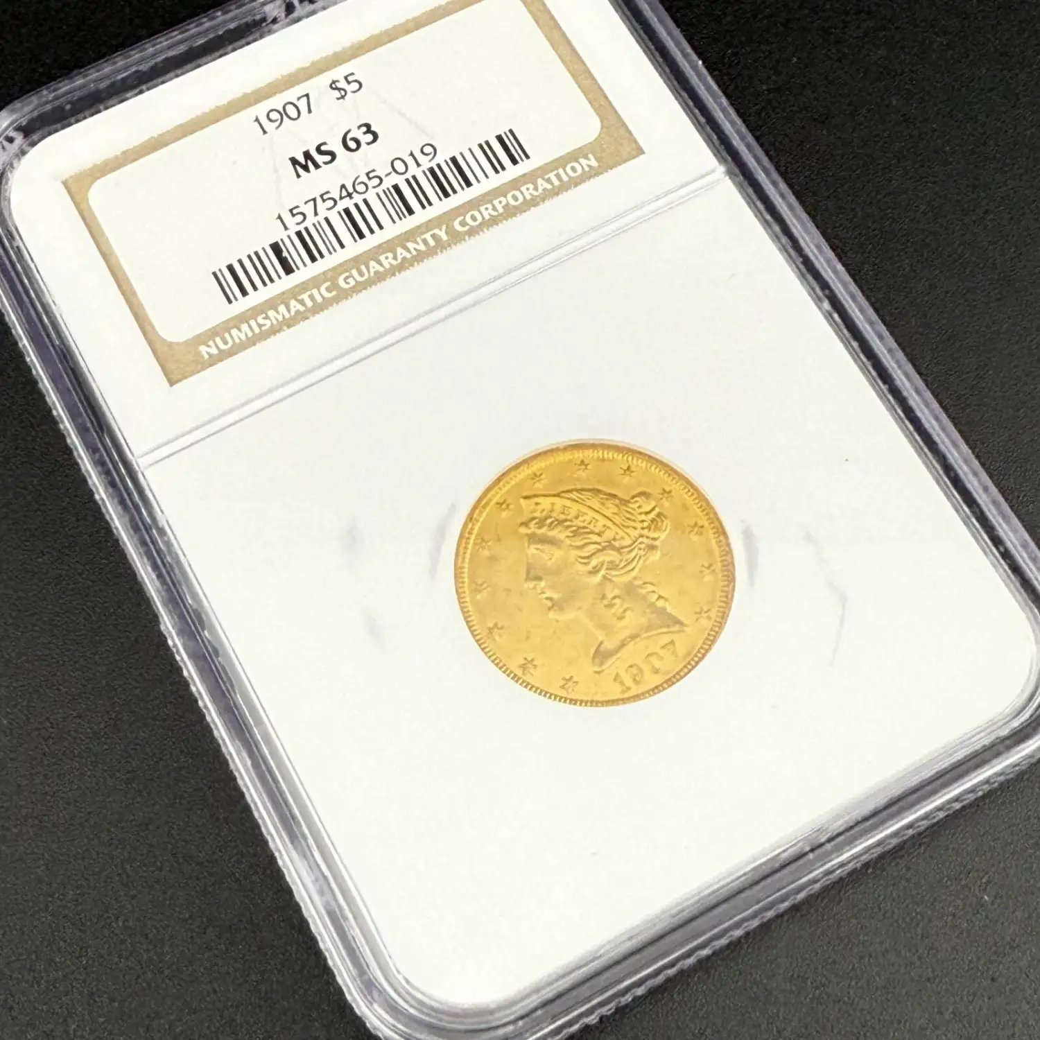 Discover the timeless allure of the 1907 $5 Gold Half Eagle Liberty Head graded MS-63, a captivating piece of American history and a sought-after addition to any collector's portfolio. This stunning coin, graded by NGC as Mint State 63, represents a remarkable moment in the annals of United States coinage.