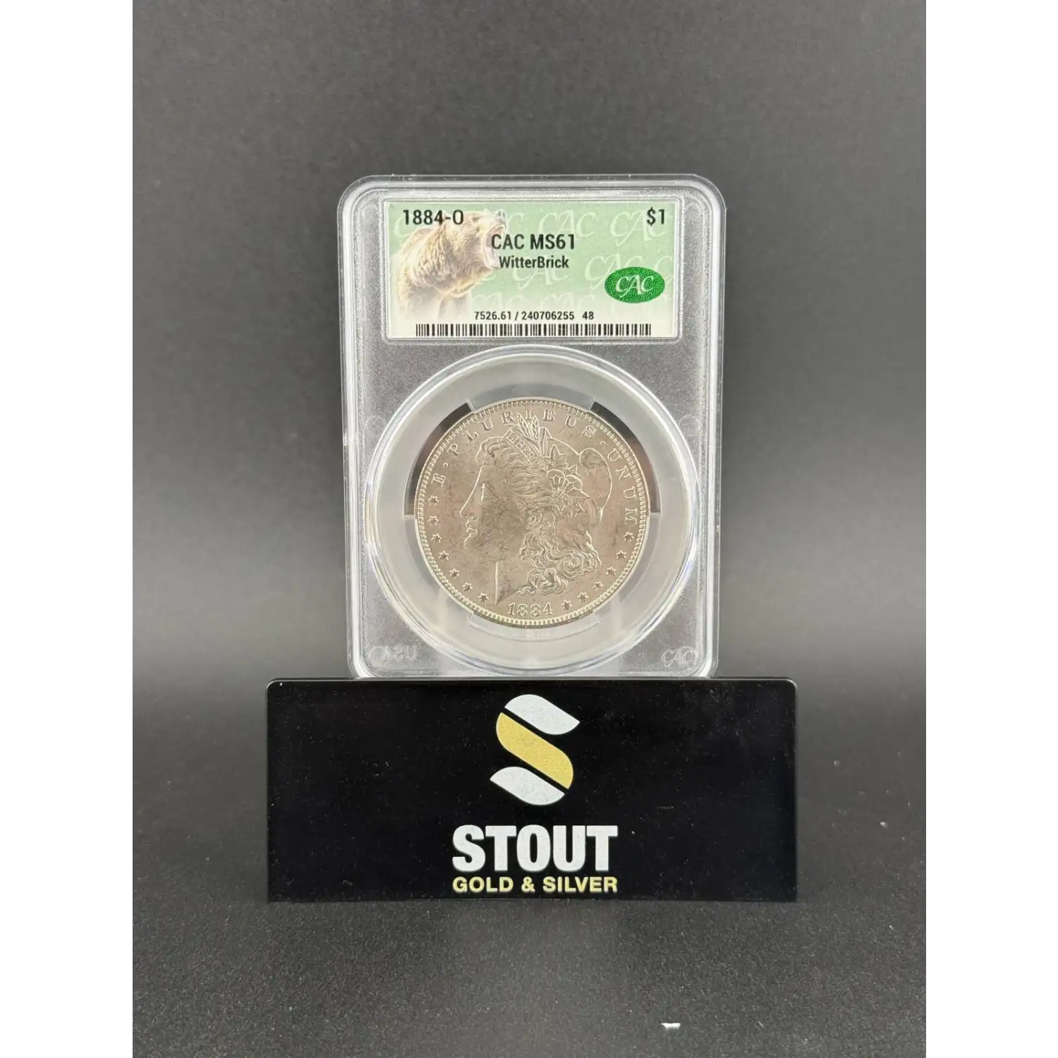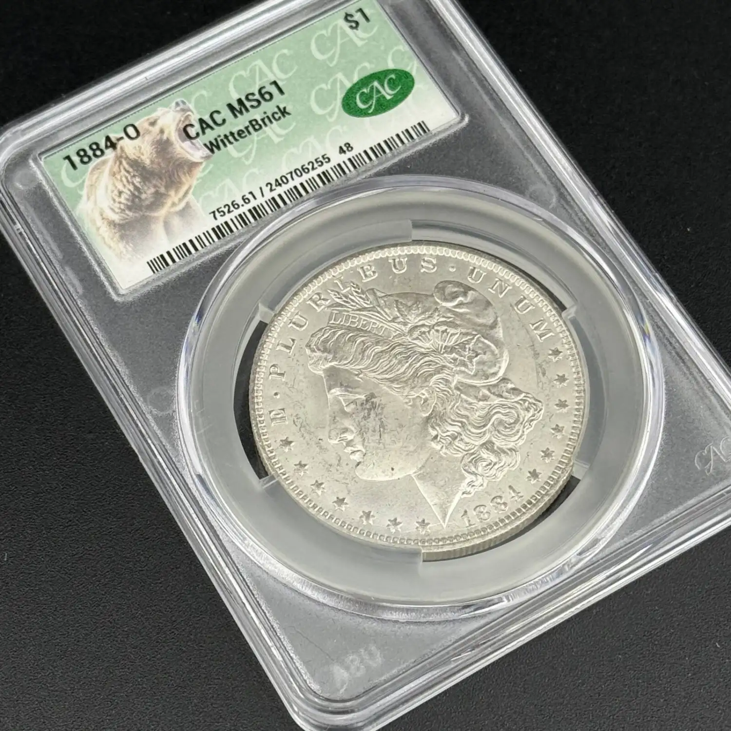 The 1884 O Morgan Silver Dollar is highly sought-after, minted at the New Orleans Mint during a pivotal era. This CACG MS 61 coin displays exceptional preservation and detail, with the exclusive WitterBrick Chandler Signature adding authenticity.