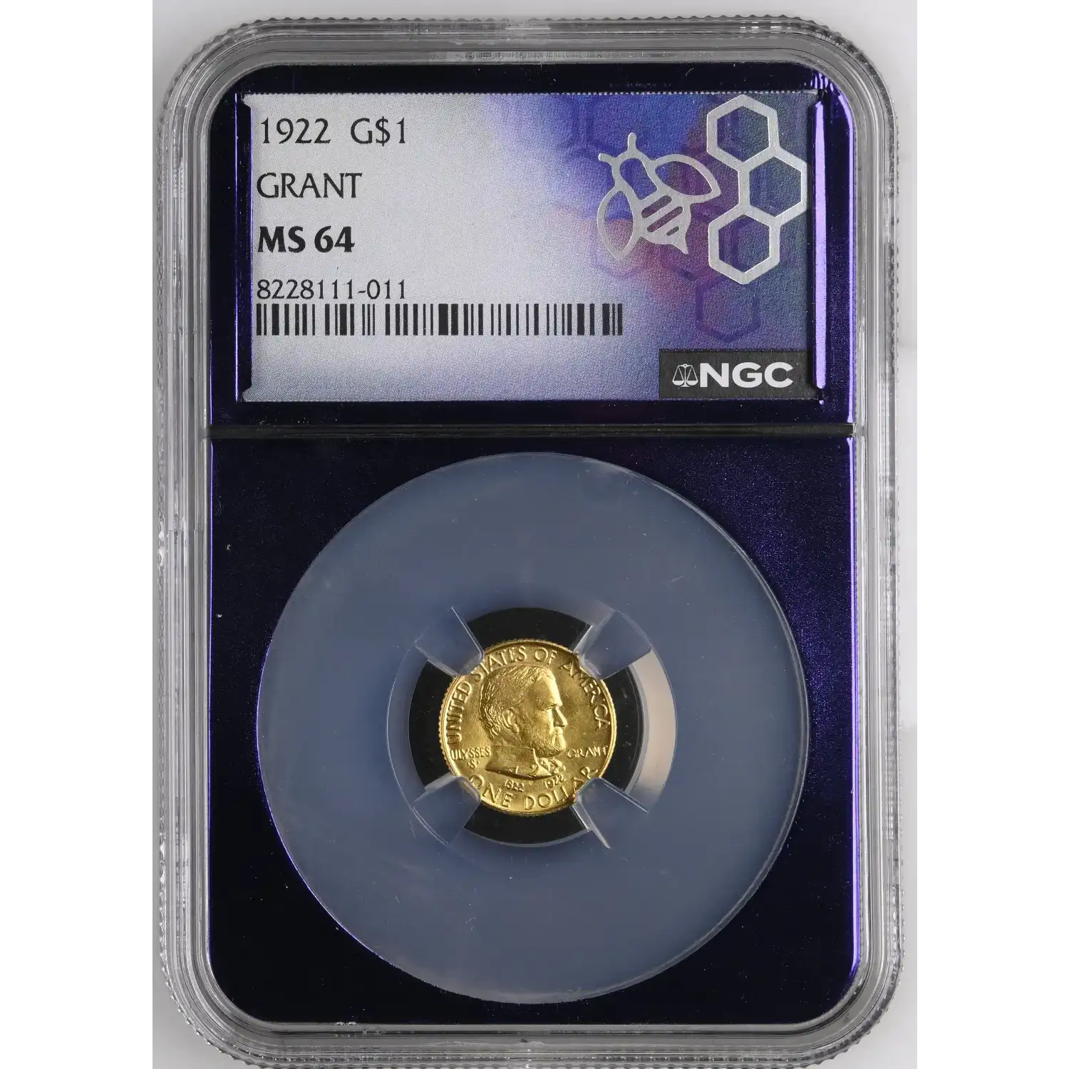 This $1 Grant Gold Commemorative Coin, certified MS-64 by NGC, features bright luster and sharp detail in a rare low-mintage issue. Struck to honor the 100th anniversary of Ulysses S. Grant’s birth, only 5,000 coins were ever minted, making this a highly collectible piece for Gold type enthusiasts and commemorative collectors alike.