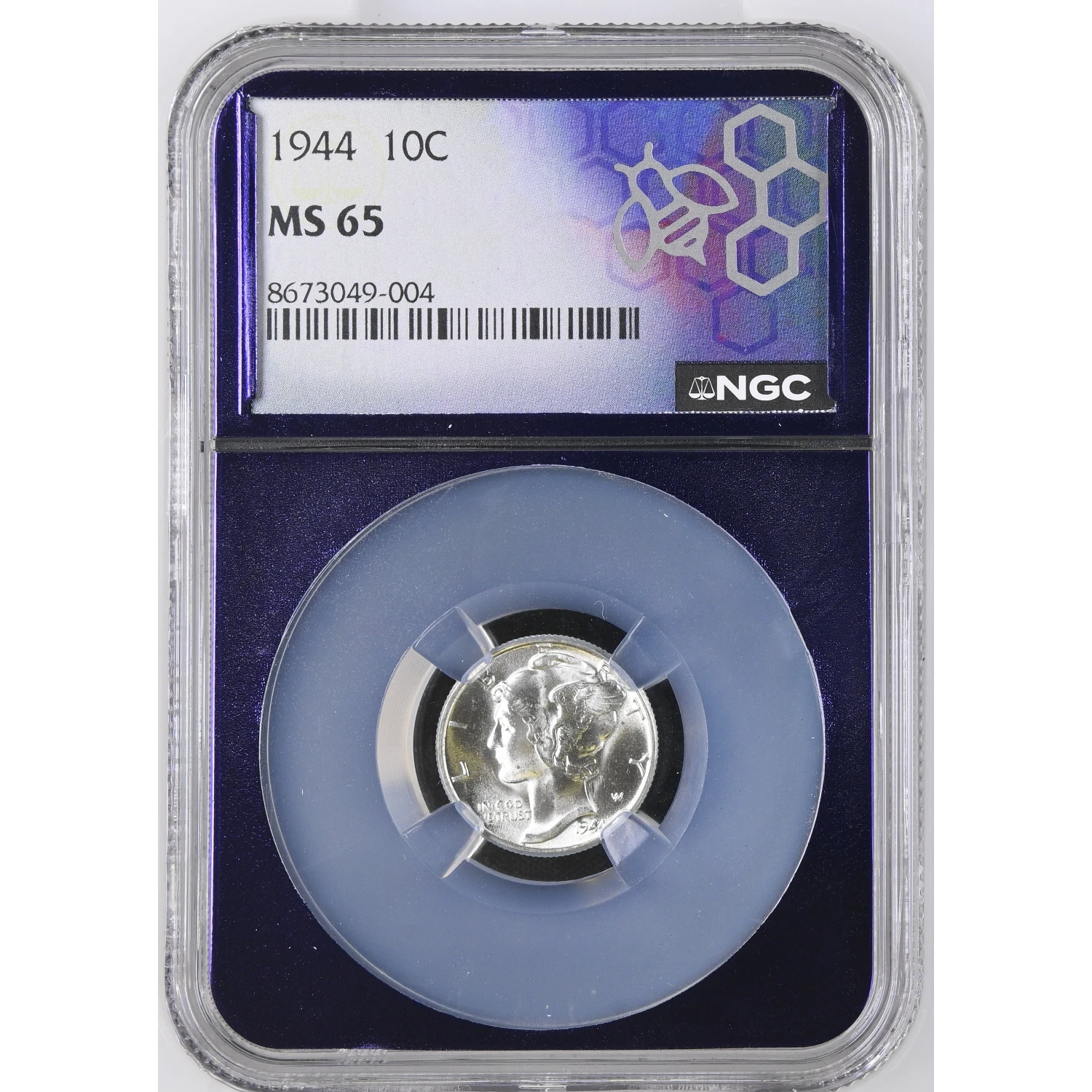 This 1944 Mercury Dime has been certified by NGC in **MS-65**, offering bright luster and strong eye appeal. Struck in 90% Silver during the final years of the series, this popular World War II–era issue features the iconic Winged Liberty design by Adolph A. Weinman.
