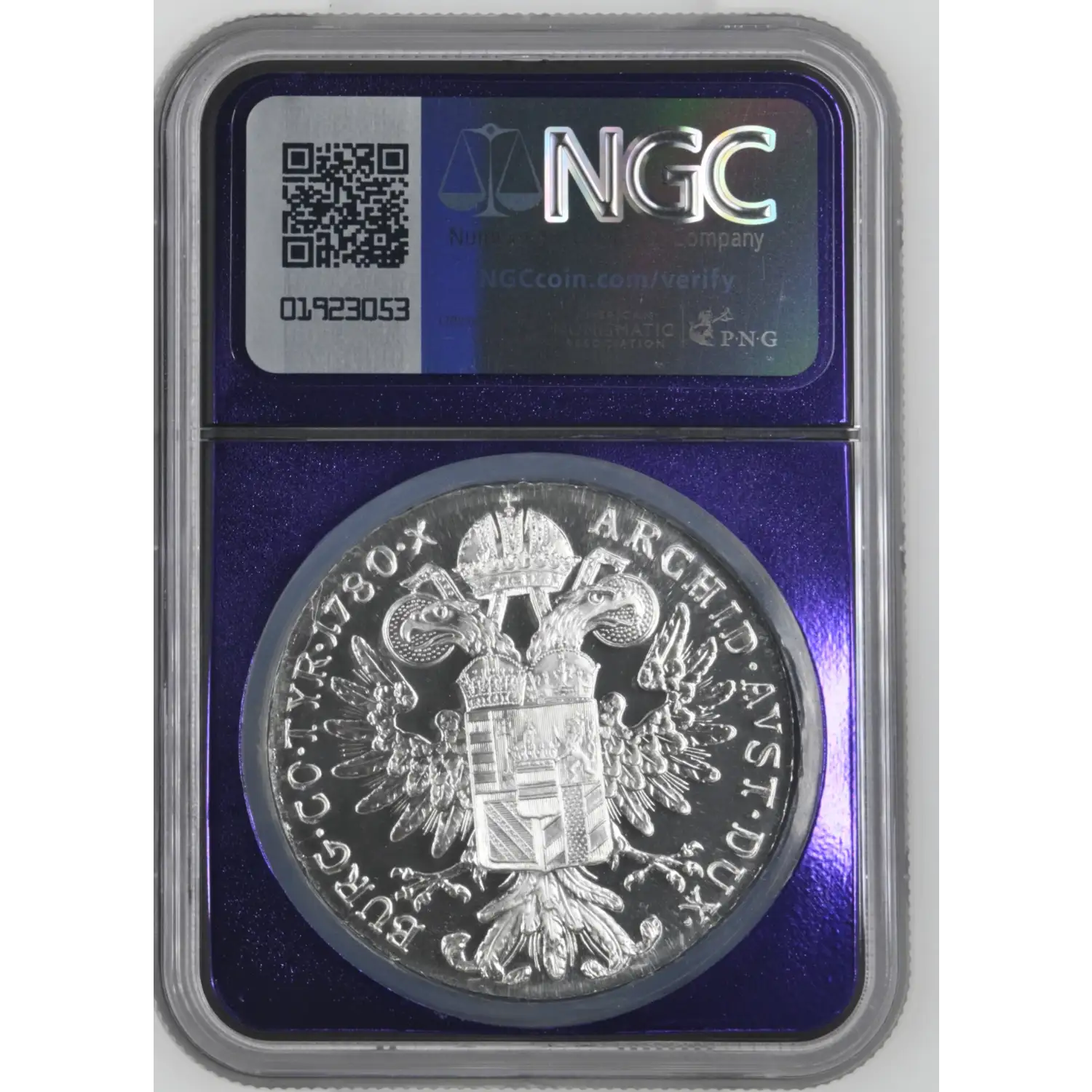 A superbly preserved example with exceptional eye appeal, this MS69PL NGC-graded Maria Theresa Thaler re-strike elevates a classic design into a premium collector offering.