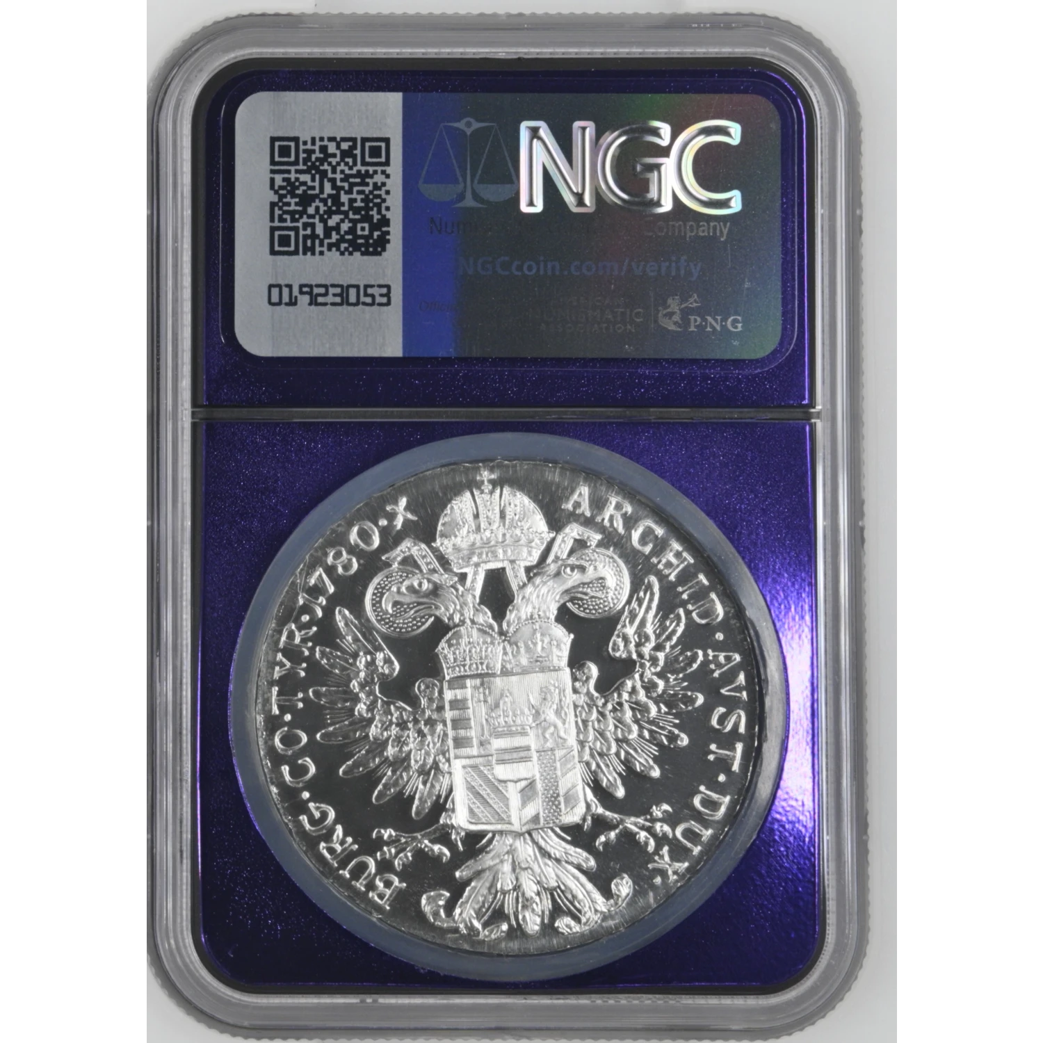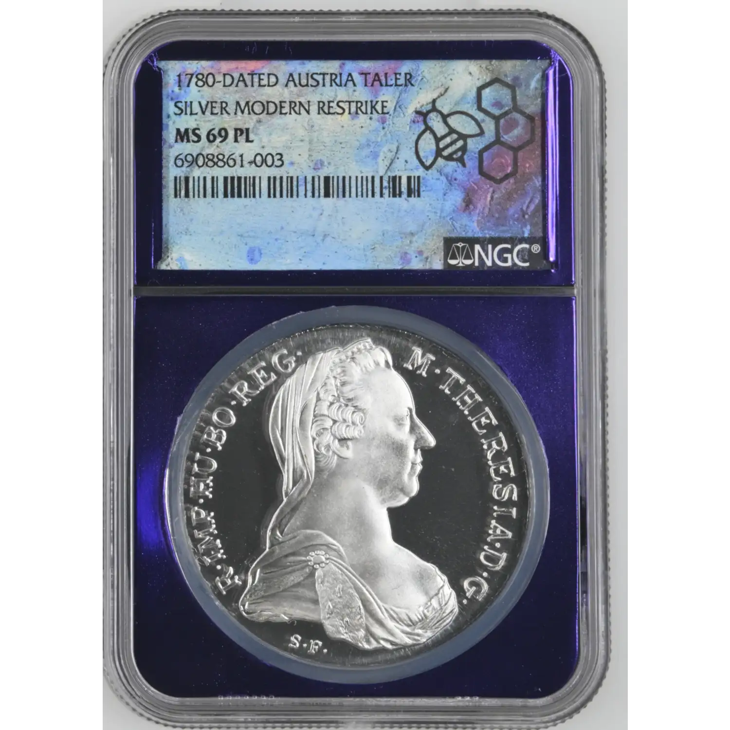 These stunning re-strikes from the Austrian Mint pay tribute to the historic and widely collected Maria Theresa Thalers. This particular example has been graded MS69PL by NGC, an impressively high and exceptionally difficult grade to achieve for this issue, making it a standout piece for discerning collectors.