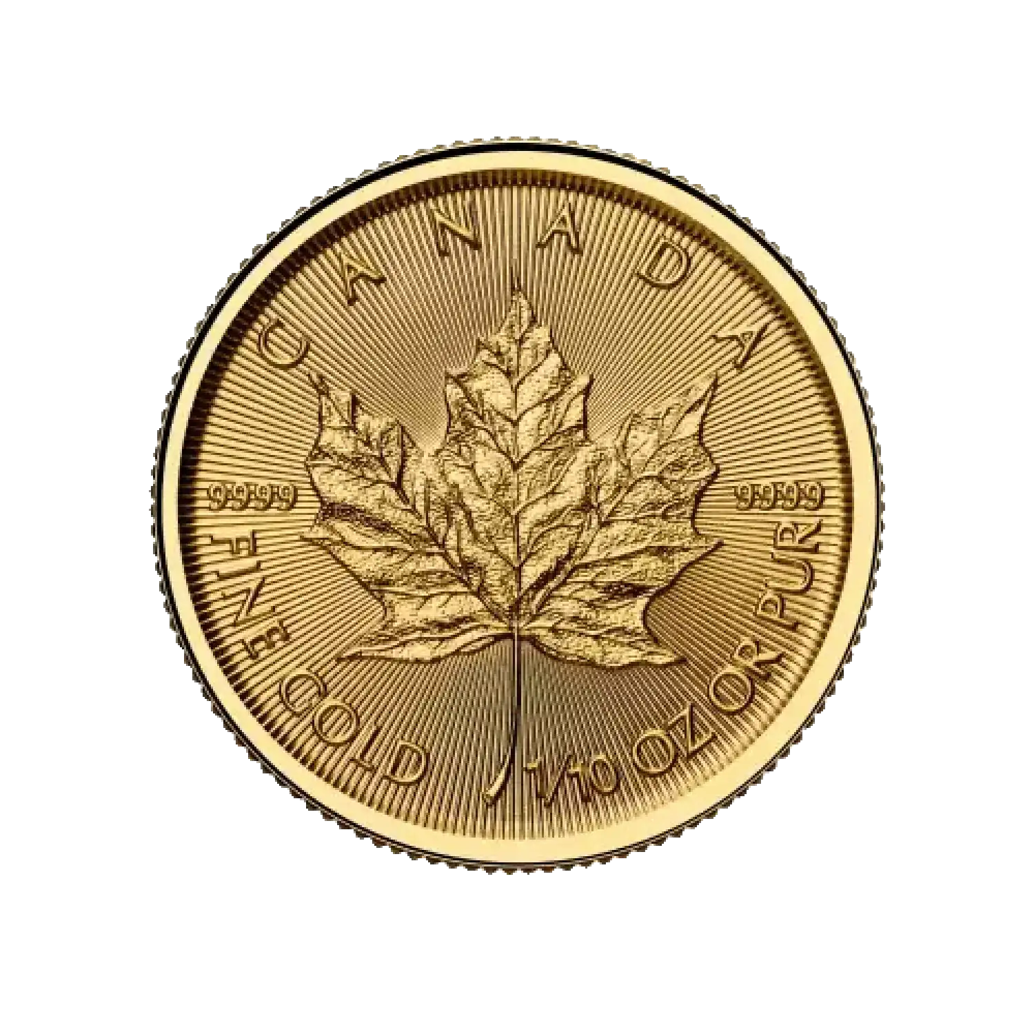 The 2026 1/10oz Canadian Gold Maple Leaf coin is a stunning addition to any investor's portfolio or collection. Renowned for its exquisite craftsmanship and legal tender status, this coin is often sought after by both novice collectors and seasoned investors alike. The Gold Maple Leaf series is celebrated globally for its purity, consistent quality, and investment potential. Crafted from .9999 fine gold, the 2026 Gold Maple Leaf represents not just precious metal; it embodies the rich heritage of Canadian numismatic excellence.