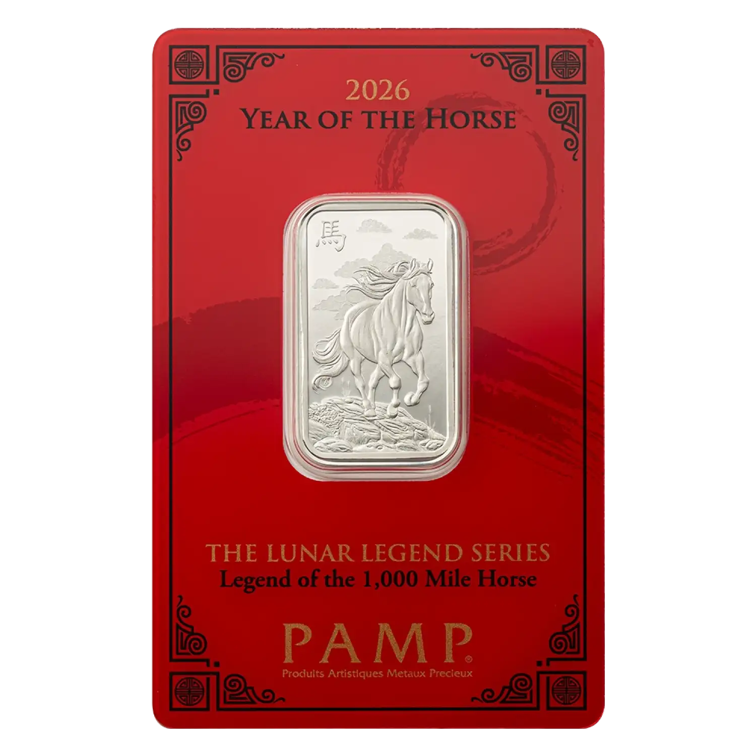 Don’t miss the chance to own this exquisite 10g PAMP Silver Bar celebrating the Year of the Horse. Perfect for collectors, investors, or as a memorable gift, it embodies both beauty and value. Add this striking silver bar to your portfolio today and experience the blend of art and wealth that only PAMP Suisse can deliver.