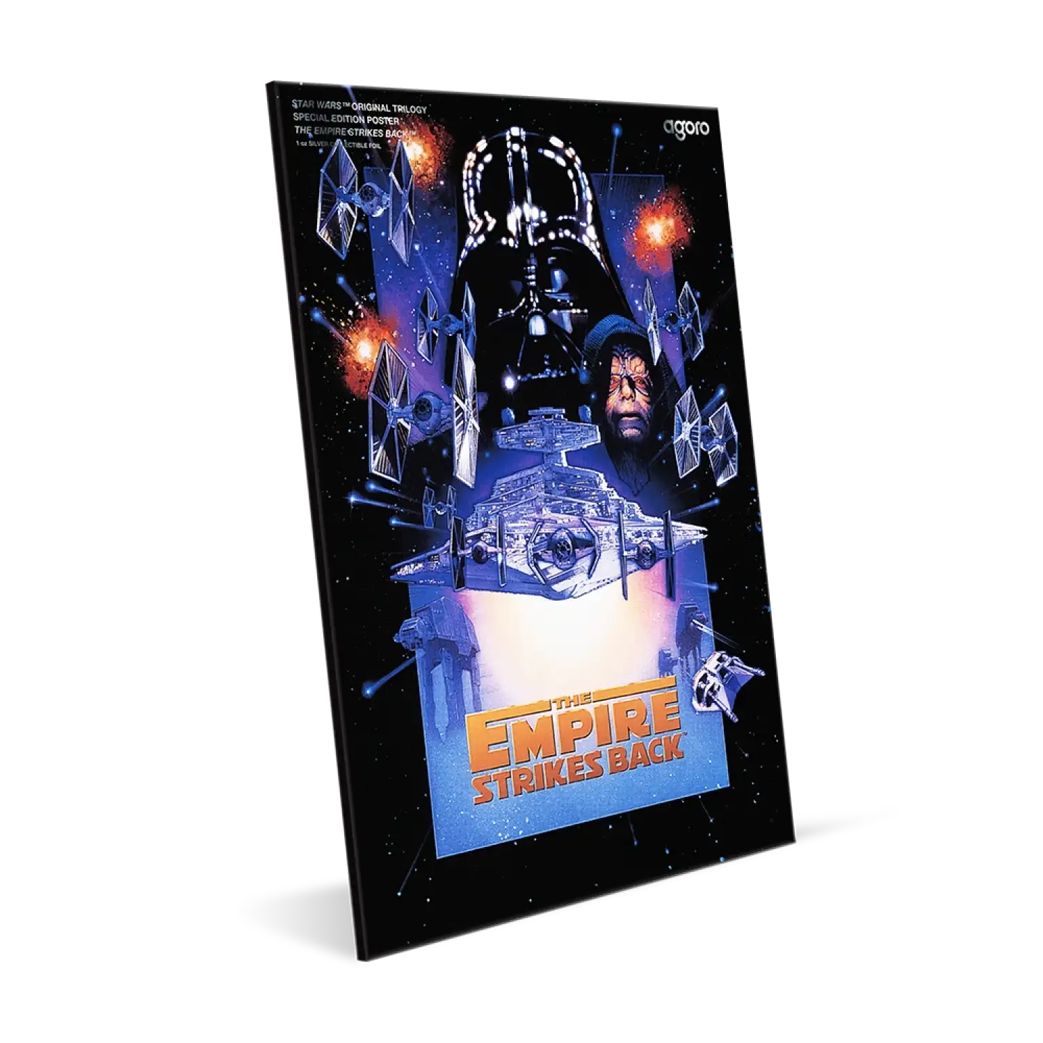 Each piece is housed in officially licensed Star Wars presentation packaging with a display window and Mark of Authenticity. Packaging is designed to stand upright and align with future releases in the Original Trilogy Poster Series.