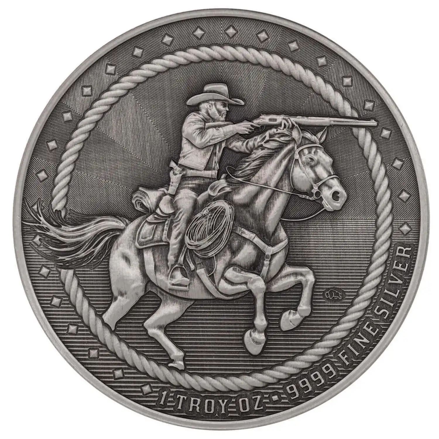 Crafted from 1 ounce of .999 fine silver, this antique round features an intricate design that depicts a rifleman in a classic cowboy stance, showcasing the artistry and attention to detail that goes into each piece. Its antique finish adds a rustic charm, giving it a timeless appeal that makes it perfect for both collectors and investors alike.