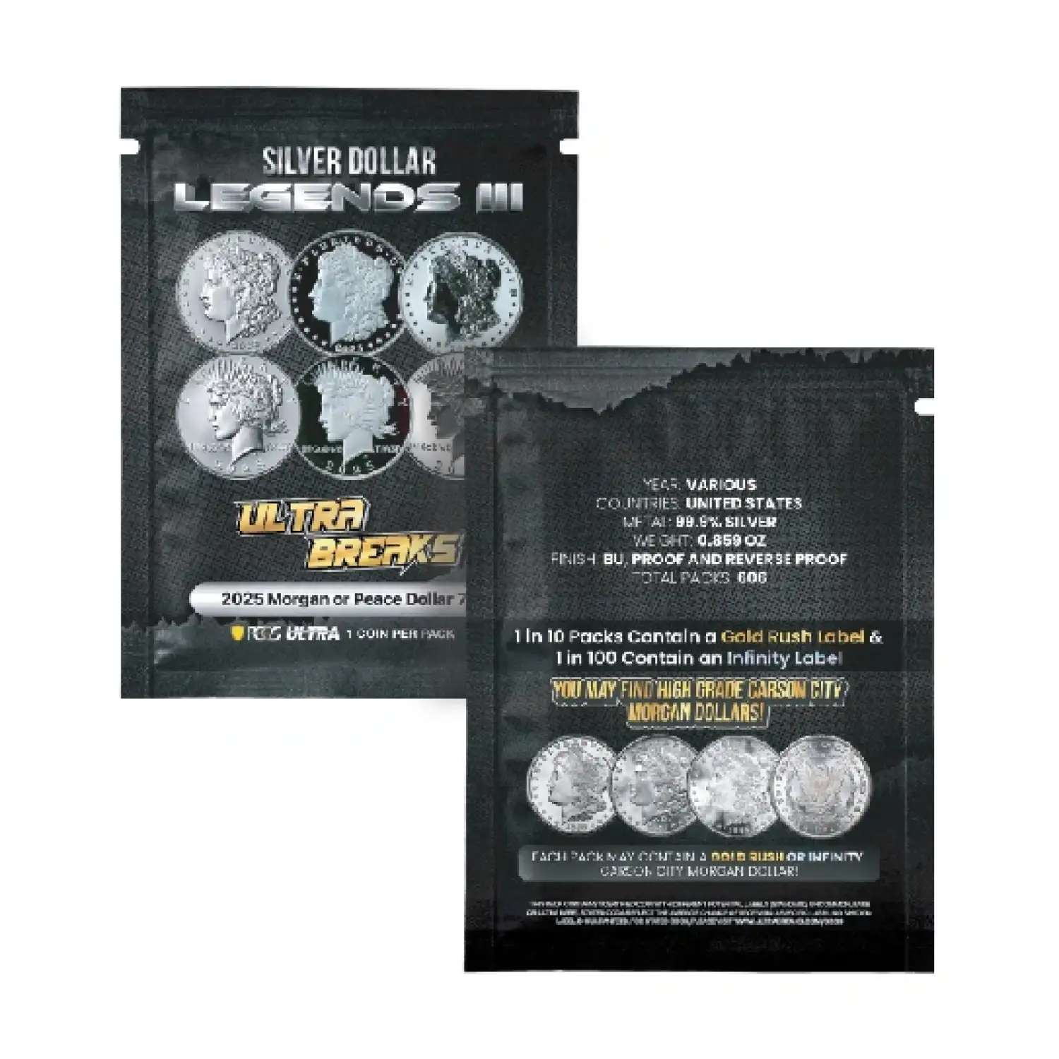 Ultra Breaks continues its premier series with Silver Dollar Legends III, a strictly limited release combining modern perfection with iconic American silver dollar designs. With a total mintage of just 606 packs, this offering delivers scarcity, quality, and chase-level appeal in every opening.