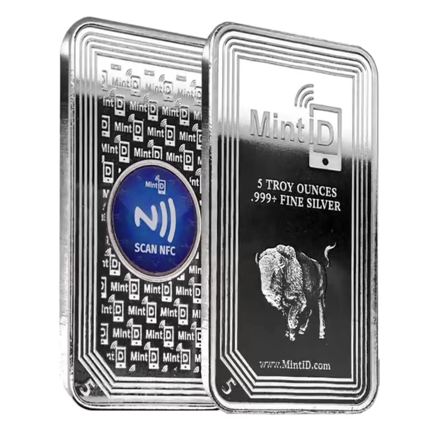 MintID offers an innovative bullion security solution, allowing you to instantly and securely authenticate your silver and gold bullion. By partnering with top-rated, ISO-9001 certified minting facilities, MintID integrates secure microchips directly onto silver rounds and bars, including the new 10 oz silver bars featured here. Each MintID microchip stores a unique digital profile for your 10 oz MintID Silver Bar. This blue microchip can be scanned with the MintID app, providing secure access to your bar's digital profile. The microchips utilize NFC technology and AES 128-bit encryption to ensure security. They are also designed to be tamper-evident, becoming inoperative or indicating tampering if interfered with. The MintID app requires iOS 13.0 or later or Android 4.2 or later.