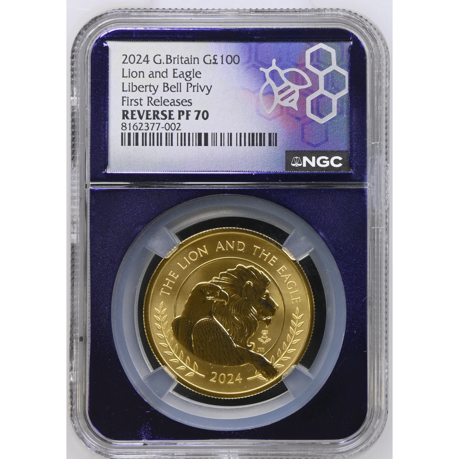 This exceptional 2024 Great Britain £100 Gold Coin contains 1 oz of .9999 fine gold and has been certified a perfect Reverse PF-70 by NGC. Enhanced by a distinctive Liberty Bell privy mark, this coin offers a unique blend of British craftsmanship and American symbolism, making it a standout addition to any premium collection.