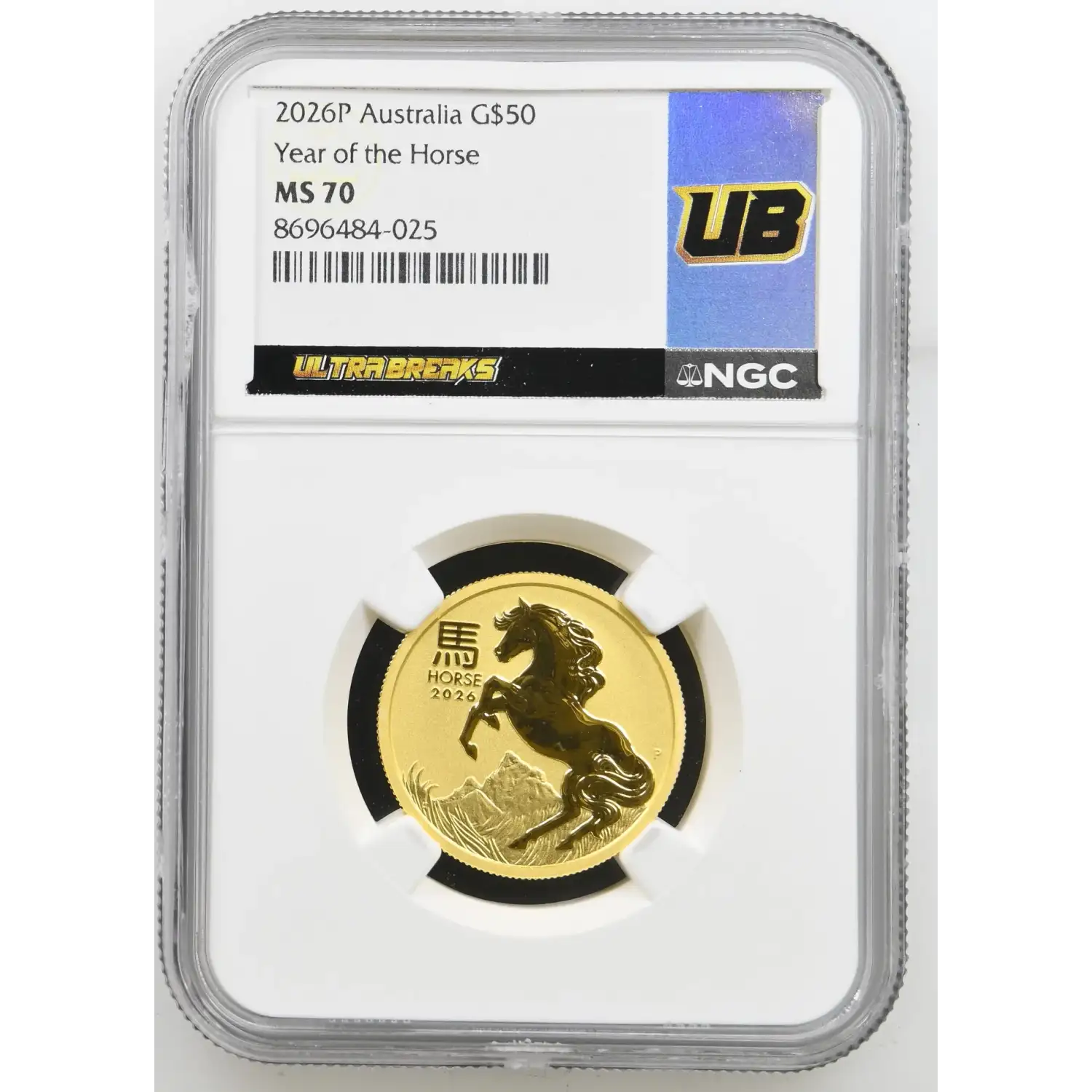 Certified a perfect MS-70 by Numismatic Guaranty Company, this coin exhibits flawless condition with no post-production imperfections. It is presented in an official NGC holder featuring the distinctive Ultra Breaks label, adding an extra layer of visual appeal and collectibility.