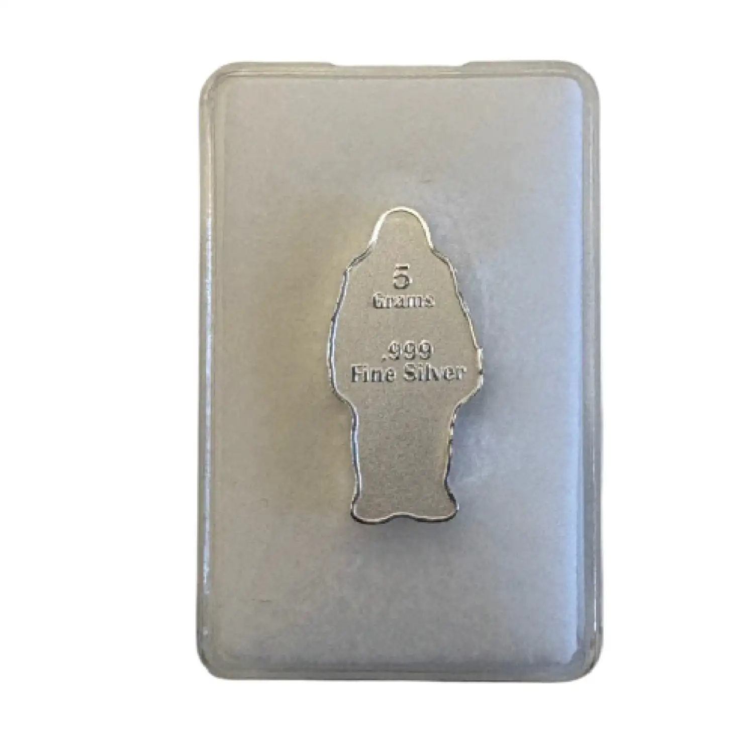 Reveal a piece of ancient mystery with this 5-gram Mummy, meticulously crafted from .999 fine silver. Featuring layered, wrapped detailing and a striking tomb-inspired silhouette, this design captures the eerie allure and fascination of the ancient world in pure silver form.