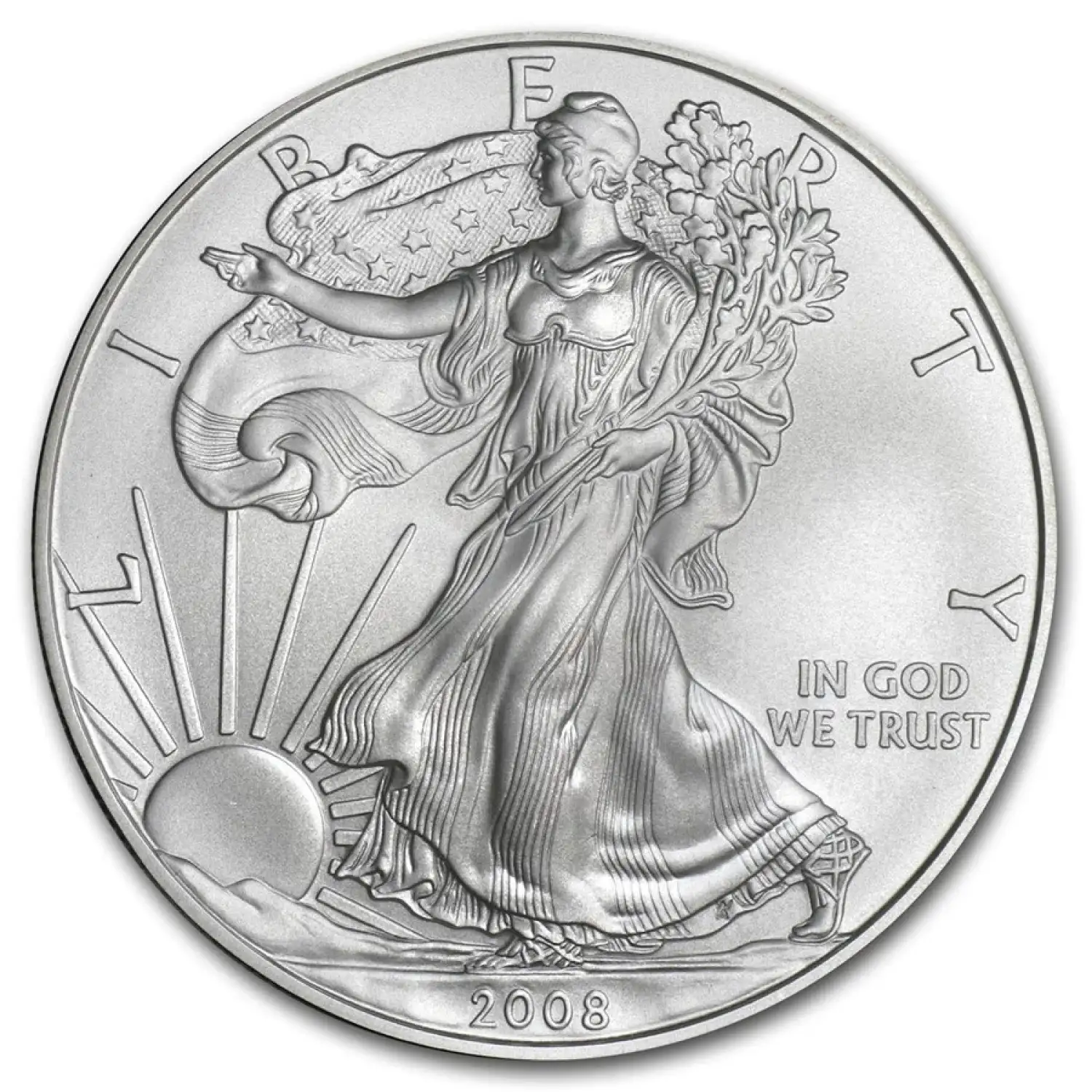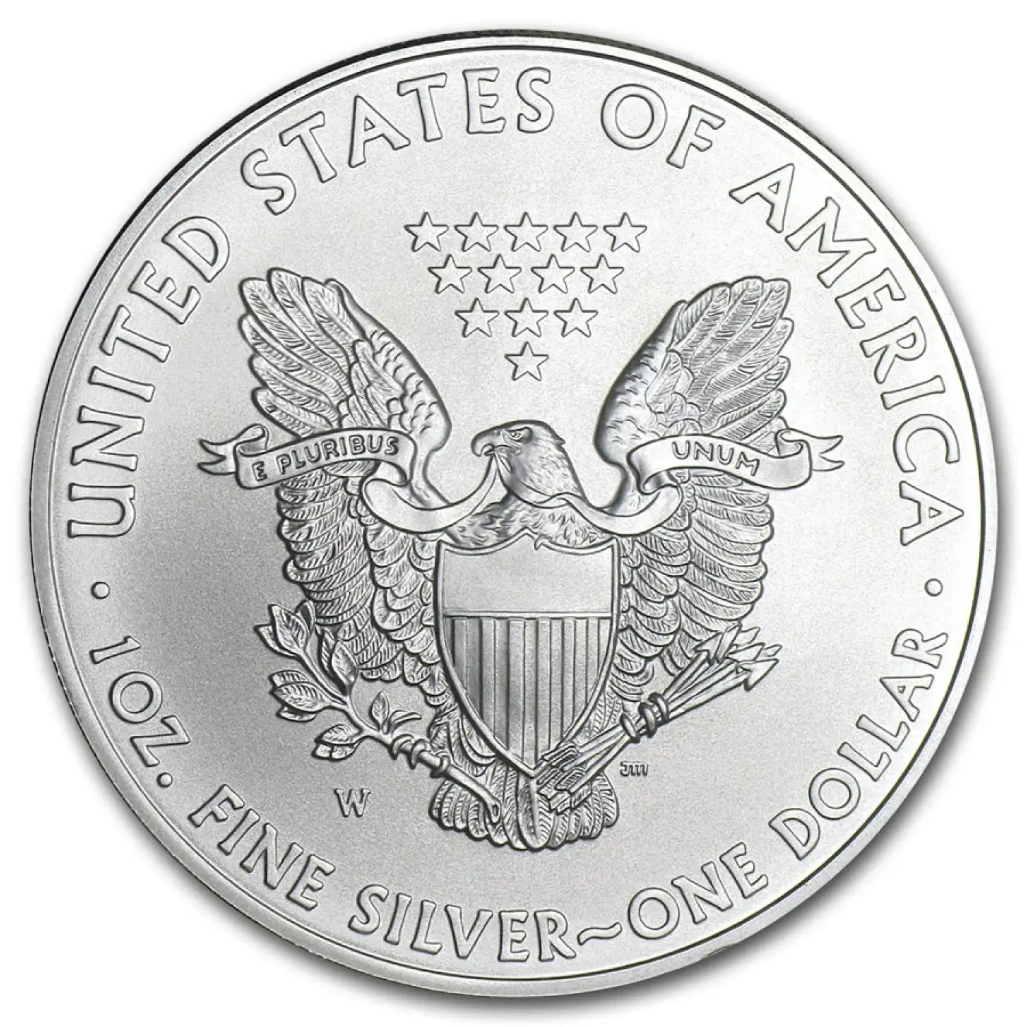 These uncirculated Silver American Eagles bear the “W” mint mark and are struck on specially burnished planchets at the West Point Mint.